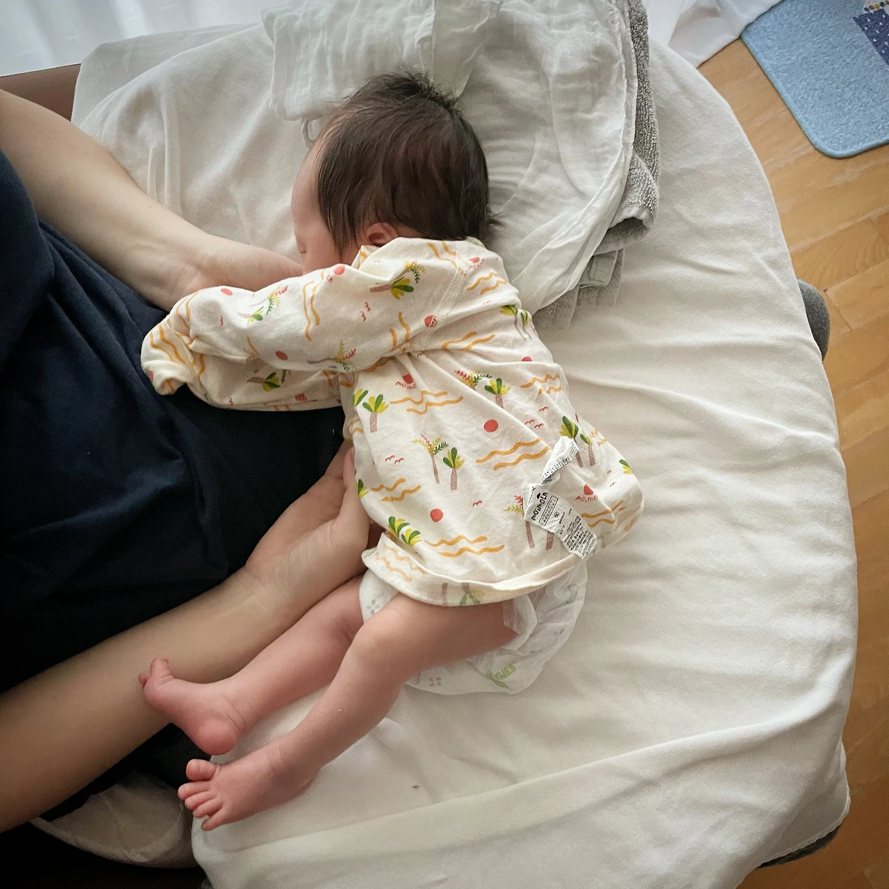 아기가 속싸개에 팔다리가 싸매여 있으면 더욱 더 아기새 같다. 얼굴이랑 통짜인 몸통만 보이니까. 올빼미? 부엉이? 그런 통통한 새같다. 아기가 태어난 지 1개월이 지나고 나서는 아기가 손을 쓰는 걸 보는 게 재밌고 또 손으로 하는 이야기를 듣고 싶어서 속싸개를 하지 않는다. 속싸개를 하던 시절에는 젖 먹기 전에 아기에게 속싸개를 해줄지 말지를 두고, 남편과 나는 우리끼리 농담으로 “싸드릴까요?” “포장해주세요” 같은 말을 하기도 했다.