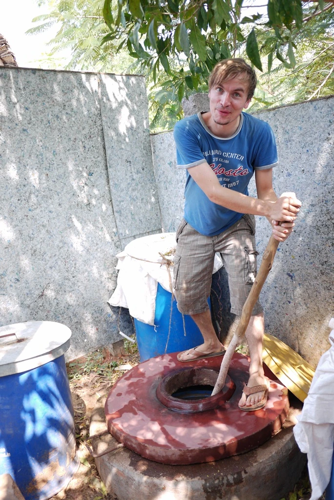 이곳에선 똥을 비료로 사용하기에 똥과 오줌을 분리해서 싸는데 거대한 똥통에 똥이 어느 정도 쌓이면 내 키보다 커다란 나무 막대로 똥통을 저어 똥산의 해발고도를 낮춰준다. 그래도 여전히 너무 높다 싶으면 똥삽으로 똥을 퍼 비료 대기실로 옮긴다. 이 똥은 육 개월 정도 지나서 나무를 심을 때 비료로 사용하는데 그땐 이 똥을 손으로 마구 만지작거리면서도 아무도 더럽다는 생각을 하지 않으니 정말 신기한 게 이런 거다.