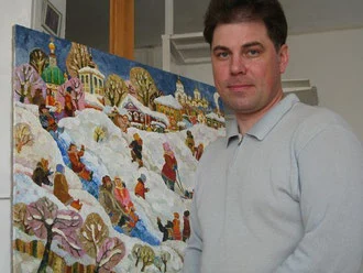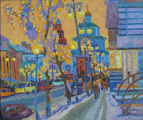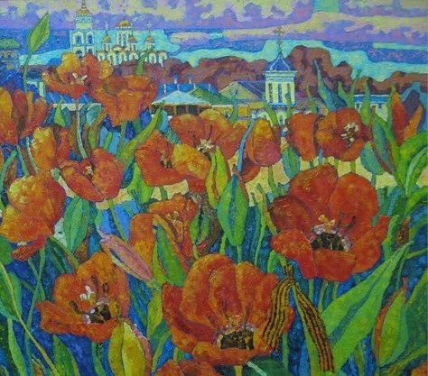 블라디미르 화파의 원칙을 고수하고 있는 그의 화법에서는 불꽃이 튀는 생명력이 느껴집니다.