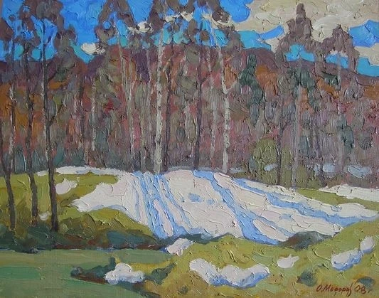 올렉 모도로프, <3월의 낮>, 2007년, 30 x 42cm, 카드보드에 유채