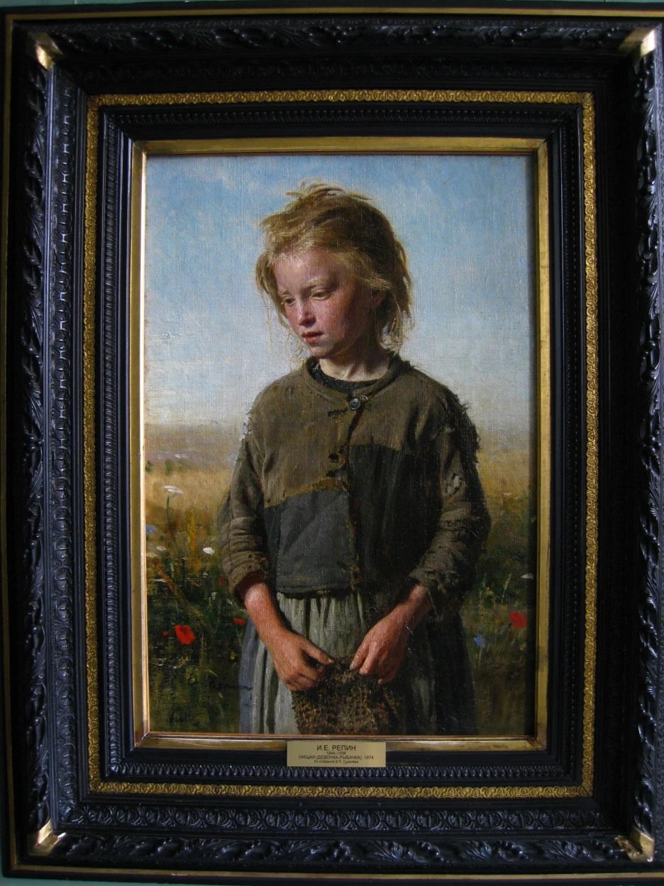 바로 <가난한 소녀 어부(Нищая Девочка - рыбачка)(1874)>로, 눈길을 사로잡는 그림의 강렬함이 그야말로 독보적입니다. 이 그림은 수카초프가 레핀의 작업실에 가서 구입해 온 것으로, 20세기 중반 모스크바의 트레챠코프 미술관에서 이를 가져오고 싶어했답니다. 그래서 이르쿠츠크 미술관 측에 레핀의 소녀 그림과 수리코프 초상화 두 점의 맞교환을 제안했는데, 그 가치가 상당한지라 이르쿠츠크에서는 넘겨주지 않았고 그 이후로도 계속 이곳을 지키게 되었다 합니다.