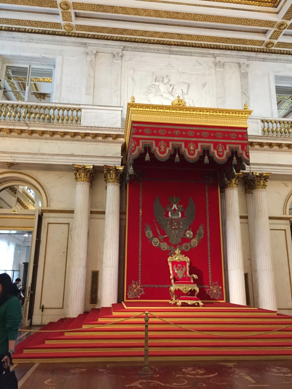 또 궁전 속 화려한 볼거리들이 참 많아요. 입구부터 요르단 계단으로 압도되고, 위엄있는 러시아 황제의 왕좌, 지금껏 작동되고 있는 18세기 귀한 황금 공작 시계까지!