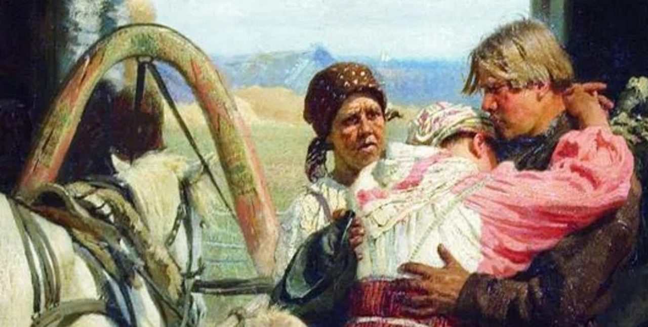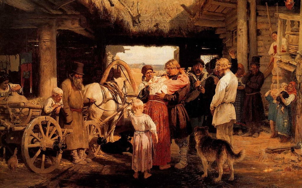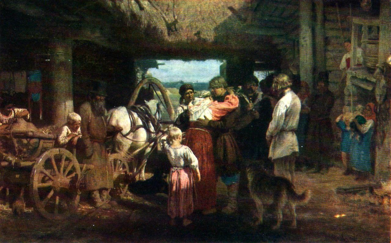 일리야 레핀 신병 배웅 부분화. 환한 빛 속에 노출되어 있다.