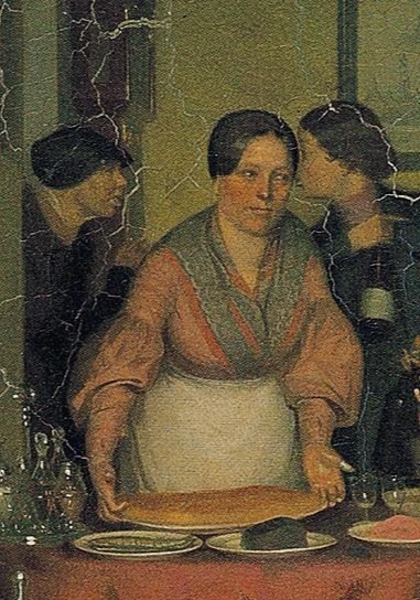 손님을 접대할 상차림에 분주한, 앞치마를 두른 여인은 어릴 적부터 그녀를 키운 유모인 것 같아요.