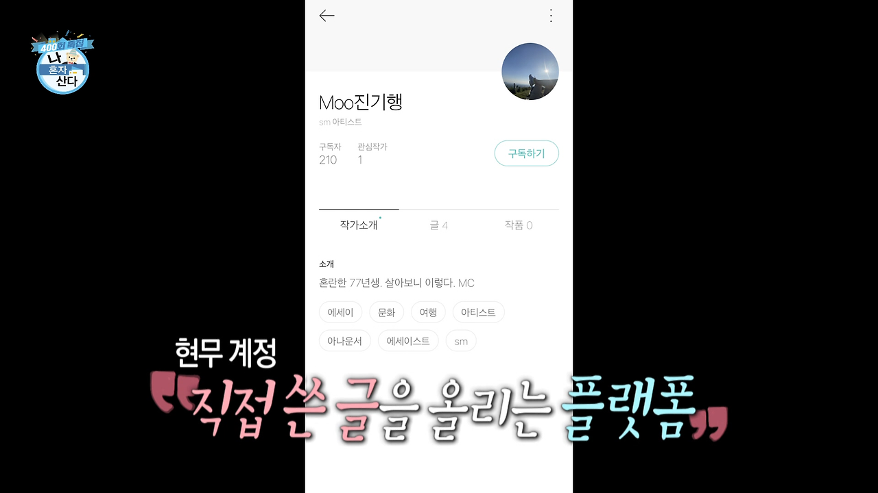 어느 날 방송인 전현무 씨가(이렇게 딱딱하게 언급했지만 평소에는 무무라는 애칭으로 부를 만큼 정말 좋아한다) 나 혼자 산다에서 ‘디톡스’를 실천한다며 혼자 하루를 보내는 회차에 브런치스토리에 글을 쓰는 장면이 스쳐 지나갔다. 진행도 잘하고 웃기기도 하는 예능인이지만 본래는 뛰어난 엘리트가 아니었나. 매주 금요일마다 나를 즐겁게 하는 이 사람은 어떻게 글을 쓸까, 흥미로운 마음에 바로 무무의 브런치스토리에 들어가 보았다. 워낙 바쁜 방송인이라 아쉽게도 어느 순간 글은 끊겨 있었다. 읽는 도중 새 글이 올라오면 좋겠다는 마음으로 가장 오래된 글부터 최신 글까지 아끼는 마음으로 하나하나 읽어 봤던 기억이 난다. 다양한 프로그램에서 진행을 맡는 사람이라 평소 본인의 이야기를 할 기회가 많지는 않았을 터, 글을 통해서라도 하고 싶었던 이야기가 많았던 것 같았다. 재밌는데 똑똑하기까지, 내가 바라는 이상향의 모습을 갖춘 사람이다.