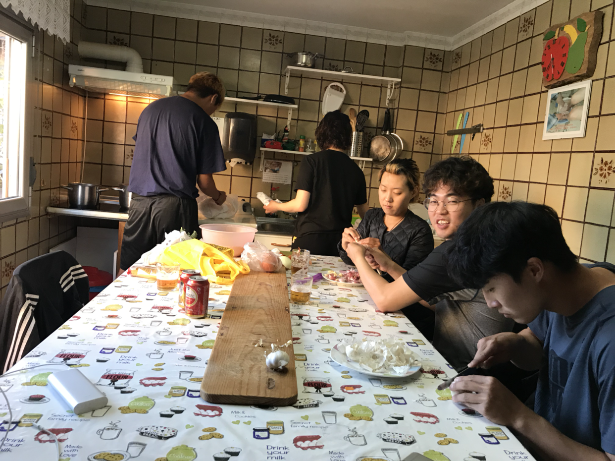 샤워를 하고 애들 4명을 불러 주방을 쓰는데 주인아주머니가 여기서 안자는 애들이 와서 요리한다고 난리 치신다. 다 미리 얘기 안 한 내 잘못이다. 결국은 착한 주인아주머니께서 삼계탕을 해 먹고 싶어 하는 처량한 눈빛의 배고픈 한국인 순례자들에게 주방사용을 허하셨다. 할렐루야!