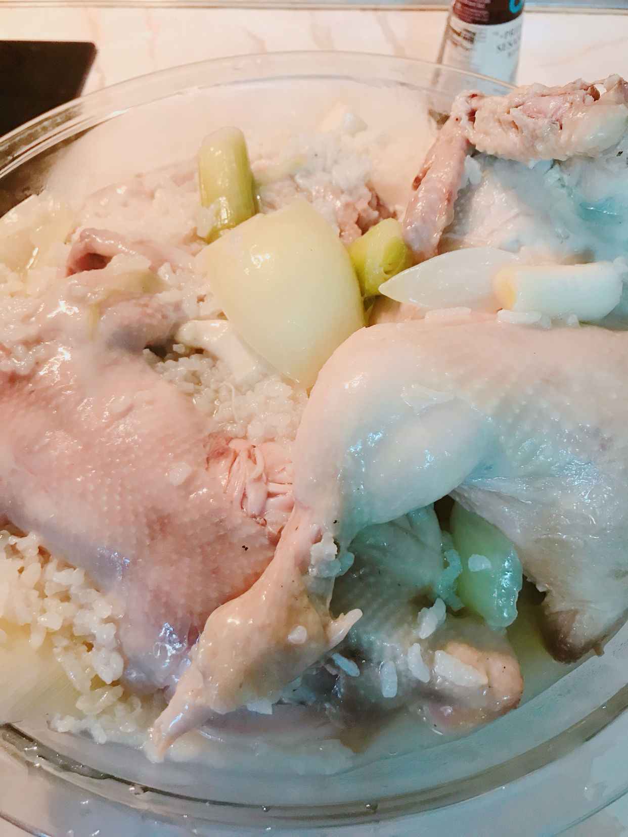 게걸스럽게 닭을 쳐들고 뜯어먹었다. 그리고 그 국물에 닭죽을 끓여 또 먹었다. 정말 배 터지도록. 이렇게 먹으니 비로소 전 날 술이 해장된다.