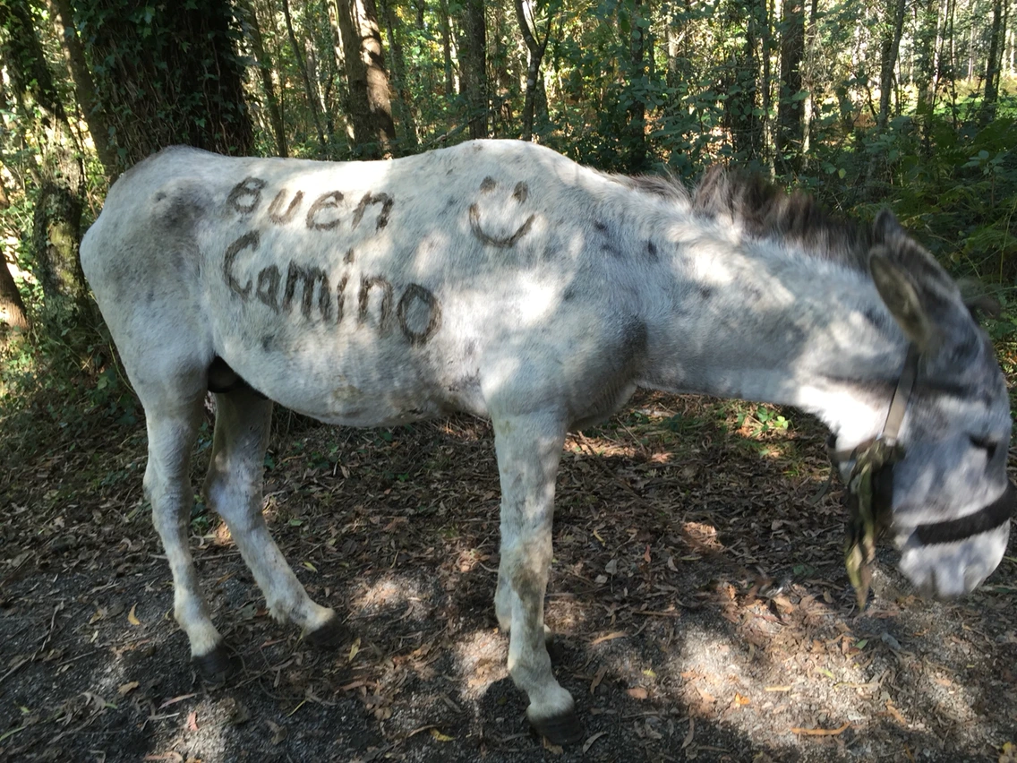 넓게 펼쳐진 평지 길이 나온다. 까미노 표지석이 보이는데 뒤에 한 아줌마(캘리포니아)가 익스큐즈미 한다. 고개를 돌리니 표지석 앞에서 사진을 찍어 달란다. 흔쾌히 찍어주고 나도 찍어달라 부탁했다. 그리고 몇 마디 더 나누는데 여기 카미노(순례길)는 이혼하거나 짤리거나 방학(은퇴) 때 오는 곳이란다. 하하. 나도 회사 관두고 왔다고 했다. 자기는 휴가 길게 내고 왔다면서.