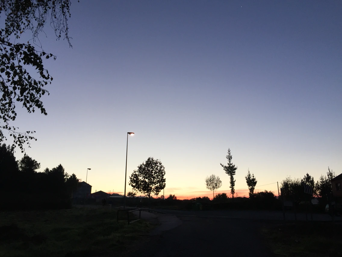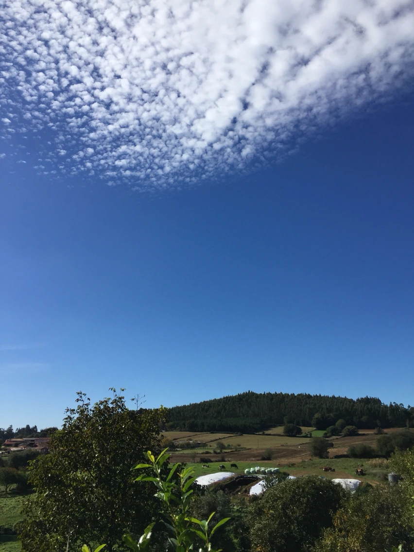 산티아고 가는 길은 주로 해를 등지고 걷는다. 동쪽에서 대서양 쪽에 가까운 서쪽으로 가는 것도 그 이유이지만 주로 해뜨기 전 시작해서 오후 3시 전에 마치기 때문에 해를 마주하며 걷는 경우가 거의 없다. 그래서 멋진 풍경을 보기 위핸 어김없이 뒤를 돌아봐야 한다. 어제 로버트 아저씨의 조언이 있어 오늘은 자주 뒤를 돌아봤다. 뒤돌아 본 하늘은 정말 명품이다. 어떻게 이런 때깔이 나오는지.