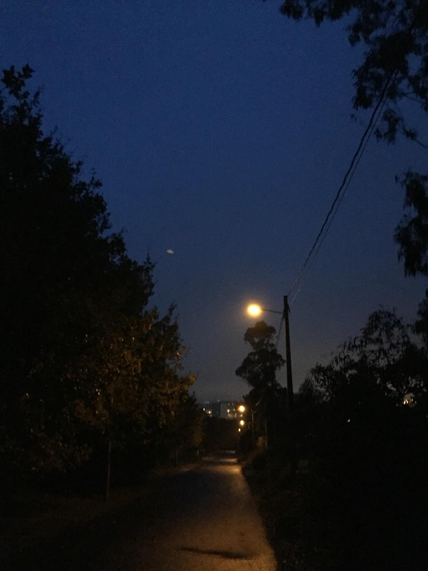 배낭을 챙겨 호텔을 나섰다. 비는 그쳤다. 이제 5킬로만 가면 도착이다. 구름이 많이 껴서 그런가 어둡다. 표지석이 잘 안 보여 여기와 처음으로 손전등을 꺼냈다. 내 자전거에서 떼어온 LED 전등이다. 이 시간 순례자는 아무도 없다. 외롭다. 그래도 처벅처벅.