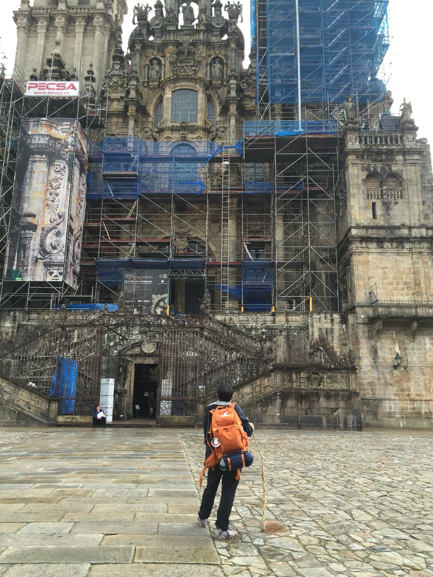 이상하게 느낌은 별로였다. 성당 보수공사 중이라 그런지 각종 건설장비가 성당 외관을 상당 부분 가리고 있었다. 다들 펑펑 운다던데 그게 아닌가 보다. 그래도 기념사진은 찍어야 될 거 같아 순례자들에게 사진 좀 부탁했다.