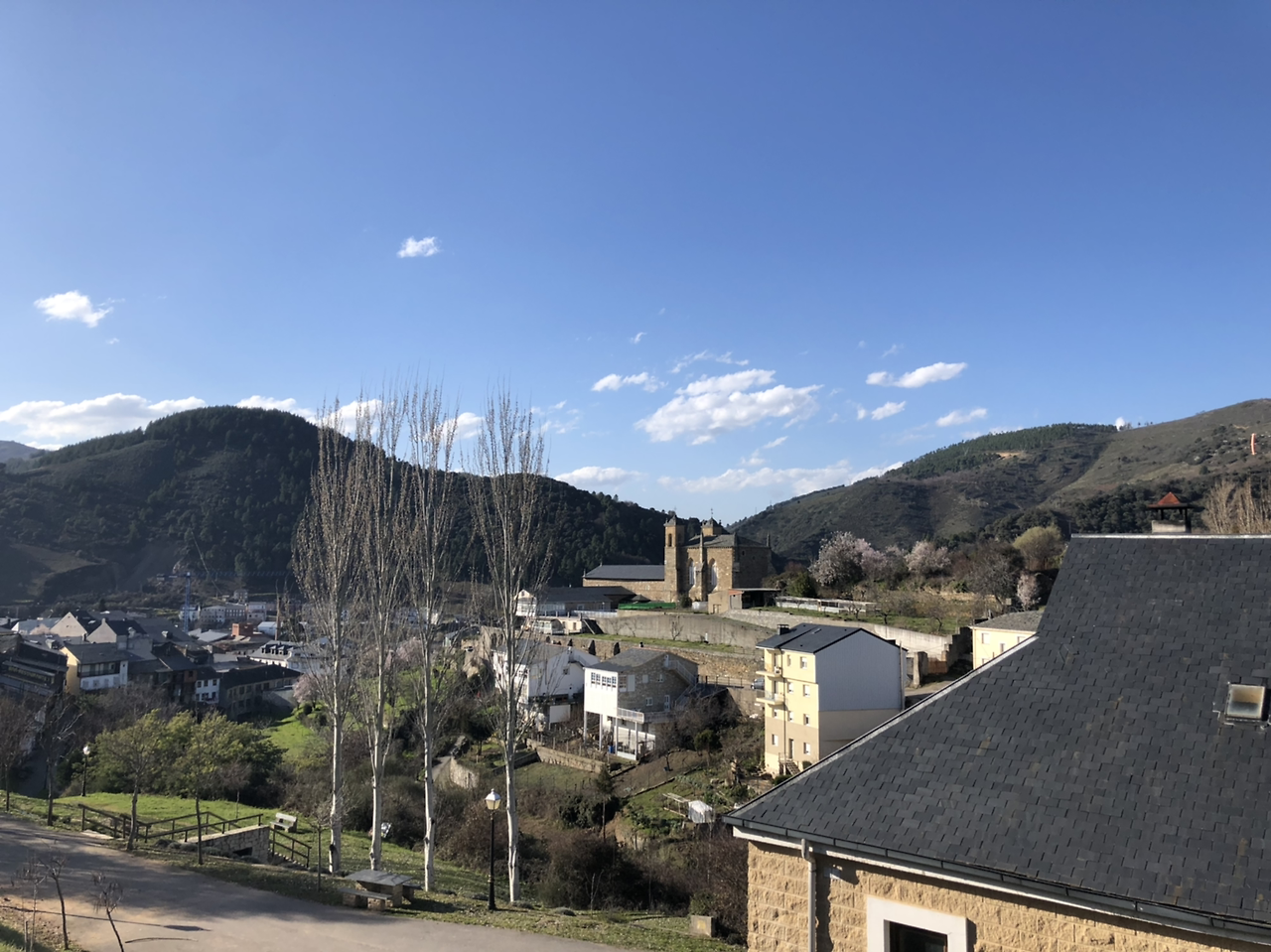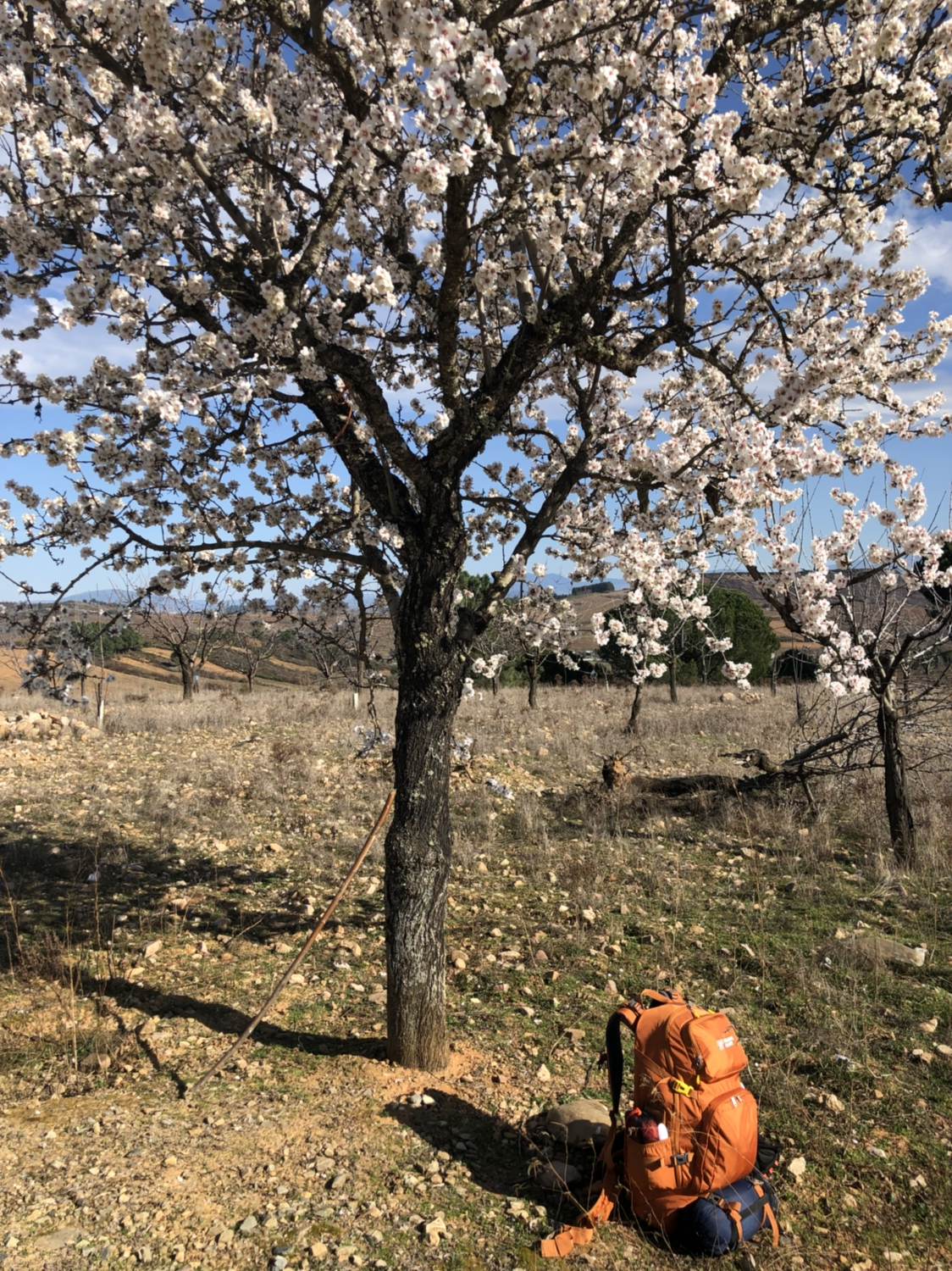 3:57 오늘 목적지 비야프랑카를 3.3킬로 앞두고 벚꽃 나무 아래서 잠시 쉬다. 넙적한 돌멩이 위에 앉으려다 엉덩방아를 찧으며 뒤로 넘어지다. ㅎㅎ 다리 힘이 풀려서리.