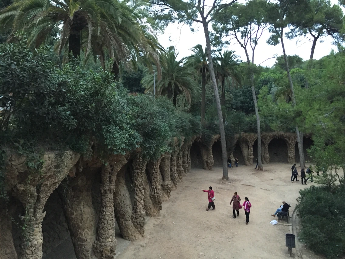 들어온 공원은 그야말로 가우디의 혼이 담긴 예술품이다. 도마뱀에 각종 형형색색의 칼라에 반하게 된다. 모든 이들이 좋아하는 나무뿌리 형상의 길은 일품이다. 멀리서 보면 각 기둥이 그 위 나무의 뿌리를 보여주는 것 같다. 다 여기 공원 만들때 파낸 흙으로 만든거라니 더 대단하다.