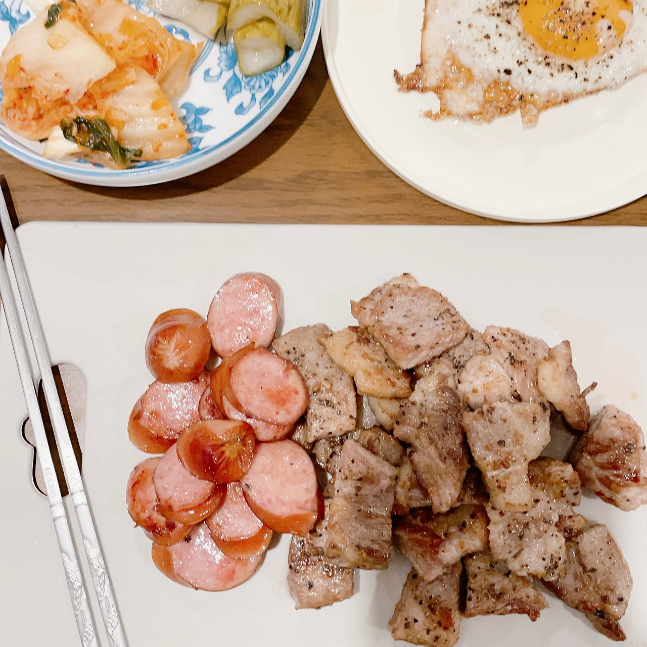 회사 출근할 때는 보통 아침을 잘 안 먹거나 먹어도 간단히 해결하는 편이었다. 그런데, 순례길이든 올레길이든 걷기 위해서는 아침을 든든하게 먹어야 한다. 아침은 든든하게, 점심은 간단하고 빠르게, 저녁은 푸짐하게 먹는 것이 나만의 패턴이랄까. 돼지 목살 2개에 소시지 하나 그리거 계란 프라이까지 든든하게 챙겨 먹었다. 커피까지 한잔 하니 컨디션 최고조다.