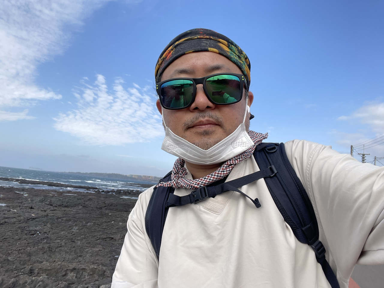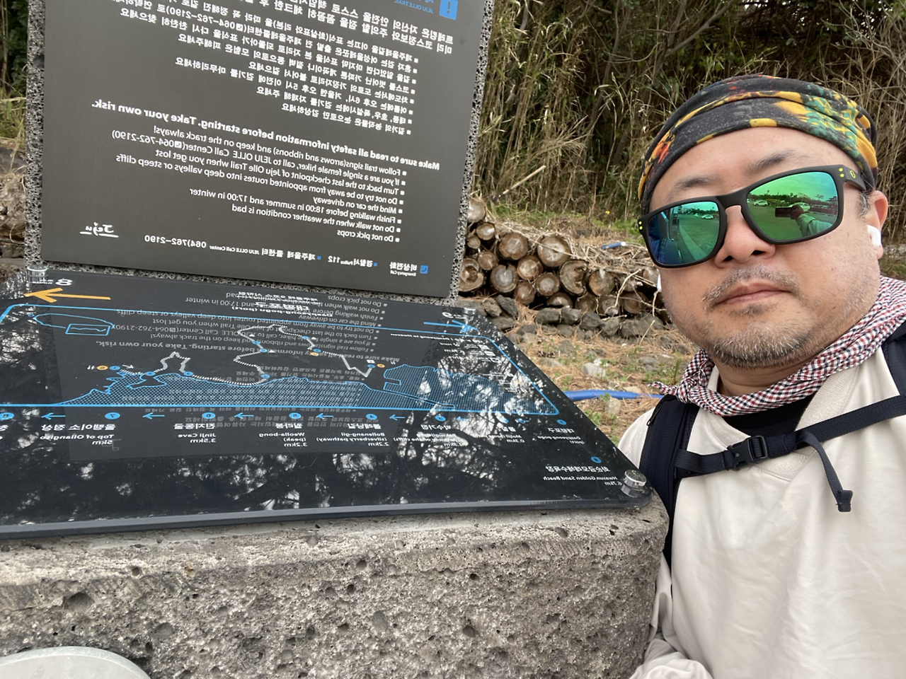 한 시간 가까이 차를 몰아 중문색달해변에 도착했다. 왜 월평아왜낭목쉼터가 아니냐고? 거긴 길도 좁고 주차도 애매해서 주차하기 편한 8코스 중간지점인 중문색달해변 주차장에 주차했다. 다시 택시를 탄다. 그리고, 8코스 출발점에 도착한다. 11:18에 드디어 올레길 8코스 출발한다. 가벼운 배낭을 메고 걸으니 발걸음이 가볍다. 시원한 바람이 발걸음을 더 가볍게 해 준다. 바람 소리 그리고 에어팟에서 들려오는 나윤선의 라망(Lament). 유채꽃 내도 바람에 실려 온다.