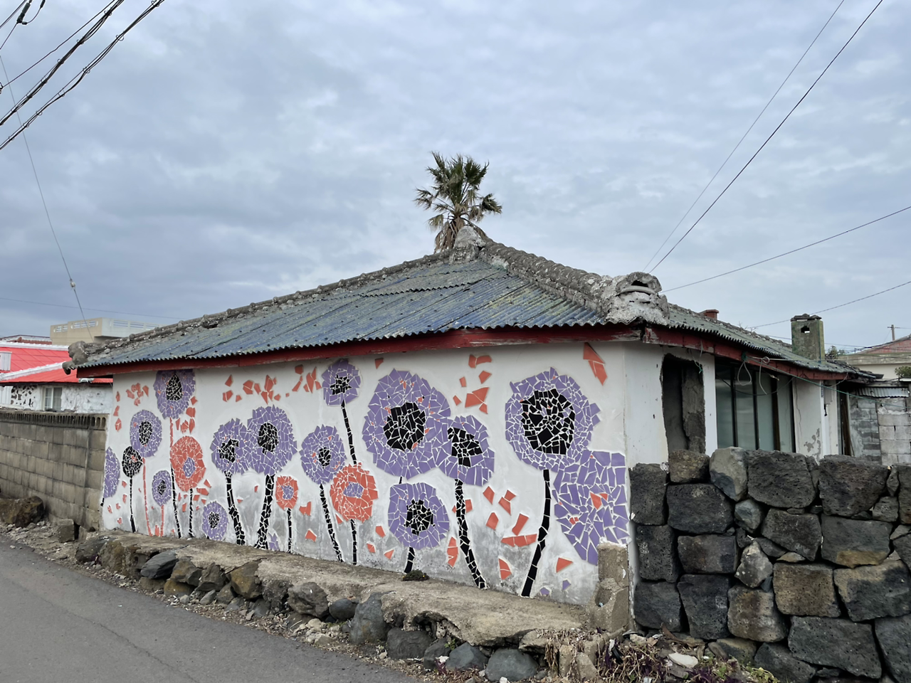 그리고 바닷바람 부는 해안길, 아주 길게 이어진다. 걷는다. 또 걷는다. 가우디의 구엘 공원처럼 타일로 장식한 벽이 보인다. 친숙한 대평항이 가까워지고 있다. 대평항은 예전 대학 과친구 세명과 함께 온 곳이기도 하다. 그때 쓴 시가 바로 '대평항에서'이다.