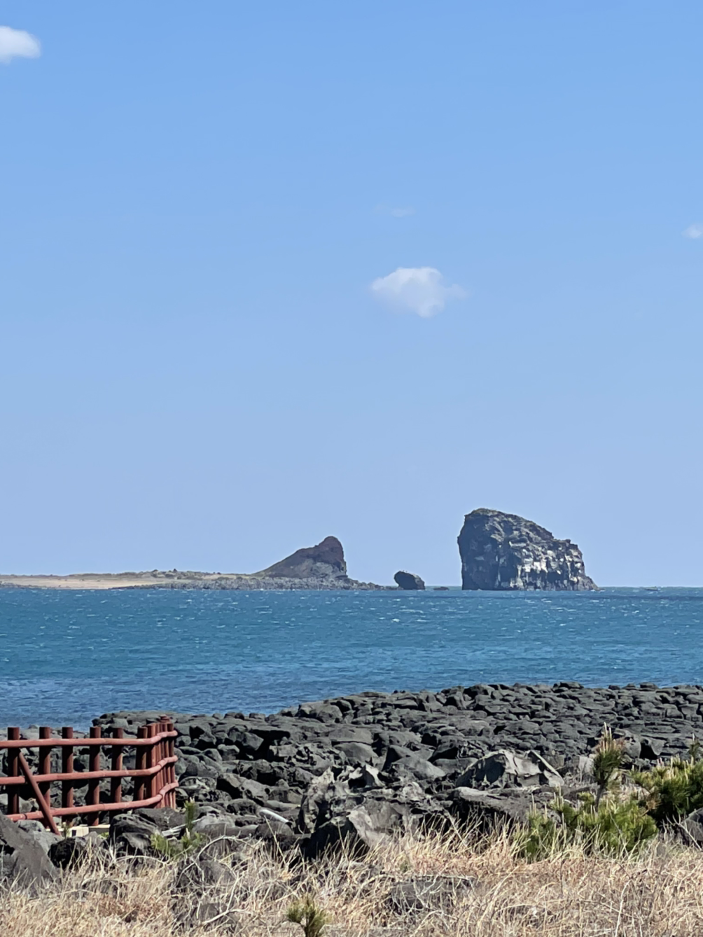 점심을 먹고 나서 2:30에 형제섬 배경으로 사진 하나 찍고 다시 출발한다. 찍은 사진을 와이프에게 보내주니 “언 년이 찍은고얏!” 불호령이 떨어진다. 헉. 올레길 걷는 한 여인에게 부탁한 건데. 귀신이다. ㅎㅎ