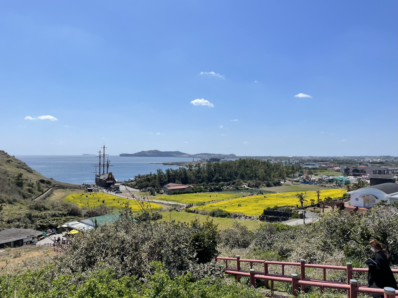 산방산을 돌아가면 넓은 유채꽃밭이 펼쳐진다. 그리고 푸른 바다를 배경으로 거대한 목선이 보인다. 바로 하멜 표류기에 나오는 하멜이 타고 온 상선이다. 하멜은 네덜란드 동인도 회사 직원으로 1653년 1월 네덜란드를 출발하여 자카르타, 타이완을 거쳐 일본 나가사키에 가던 중 폭풍우로 제주에 표류한 사람이다. 조선에서 14년간 억류되며 한양, 강진, 여수 등으로 끌려 다니며 유배당하고 결국 일본으로 탈출하여 고국 네덜란드로 돌아갔다. 그가 쓴 하멜 표류기는 조선의 존재를 유럽에 알렸을 뿐만 아니라 그 당시의 사회, 풍습, 생활상 등을 알려주는 귀중한 역사적 자료이다. 근데, 그는 자신의 억류 경험을 공유하고자 쓴 게 아니라 14년간 밀린 동인도회사의 임금을 받기 위함이었다니 그것 또한 아이러니다.