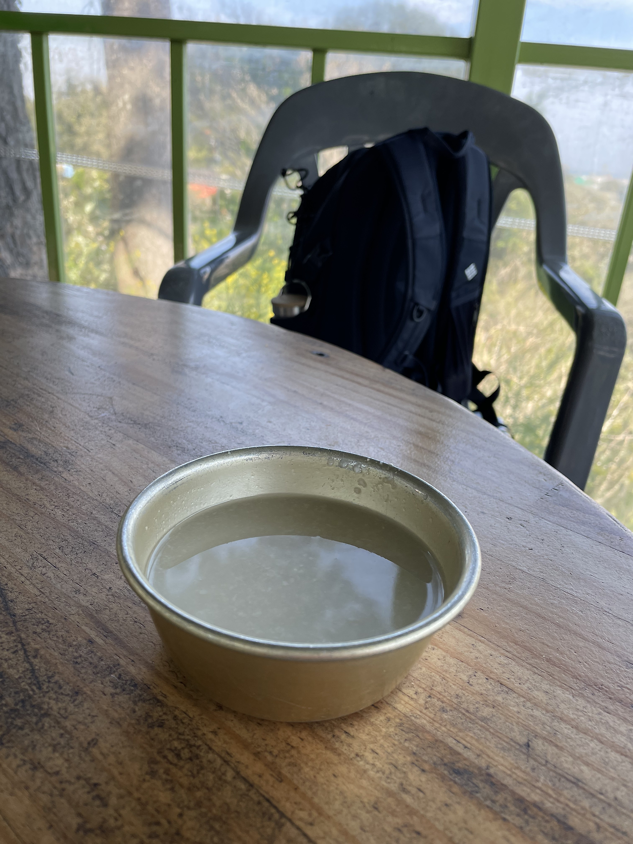 섶섬을 눈 앞에 두고 작은 포구를 지난다. 오후 2시, 7.4킬로 와서 처음 쉬다. 할머니 혼자 계신 진동산 쉼터에서 쉬며 쉰다리를 한잔 하다. 쉰다리는 누룩으로 만든 음료인데 막걸리 맛이 살짝 난다. 편의점 시원한 콜라보다 훨 낫다. 할머니의 정을 느끼다. 요기로 약과도 하나 먹다.
