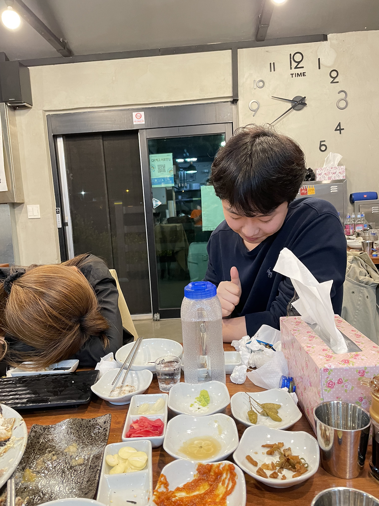 친구 은익이가 부탁해서 이모님이 참치 내장도 주셨다. 이건 또 딴 나라 식감이다. 참치가 크다 보니 내장도 넘 큰데 맛도 곱창에 비할바 아니다. 생선 뼈로 우려낸 뼈국과 참돔구이도 넘 맛났다. 참돔은 크기도 무척 크지만 두께도 한 면만 1센티가 넘는다.