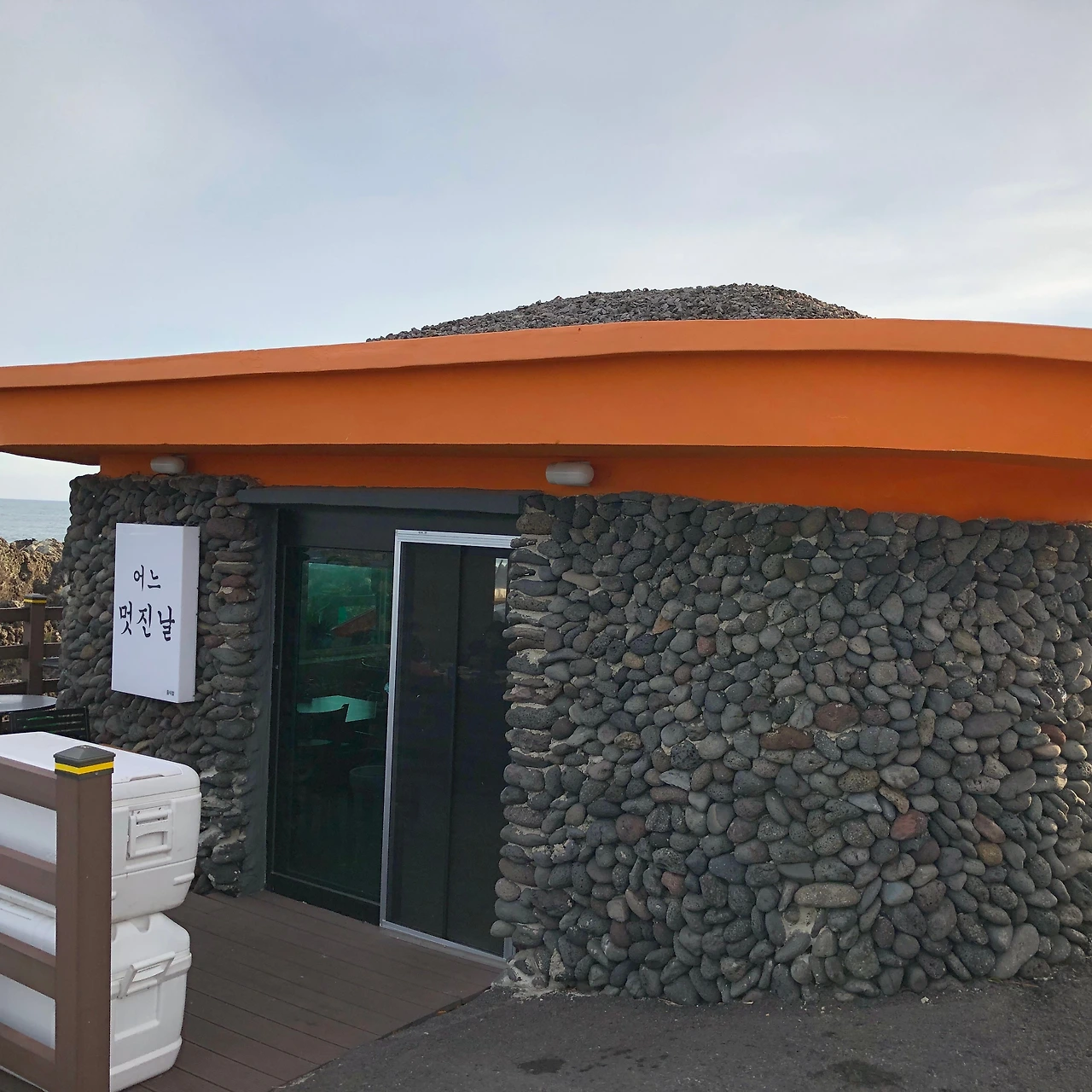 드디어 우석이와 여친이 들어온다. 소주도 6-7병을 사 온다. 참, 위미항에 있는 이곳 '어느 멋진날'은 내가 제주에서 제일 좋아하는 횟집이다. 영화 건축학개론에 나왔던 '카페 서연의집'도 바로 근처다. 우린 돌돔코스로 시켰는데 처음 나오는 것은 돌돔의 입술, 껍질, 간, 내장, 뽈기살 등 특수부위가 나온다. 다른 곳에서는 손이 많이 가 해주지 않는 부위다. 사 오라 했던 '모에 썅똥' 샴페인부터 먼저 시작했다. 술이 술술 넘어간다.