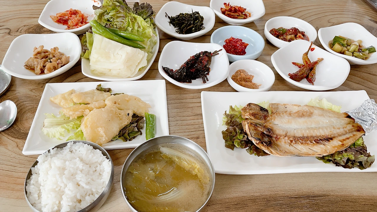 오후 2:13, 14.65킬로를 걷고 처음 쉬다. 배도 고파 차귀도가 보이는 자구내 포구에서 옥돔구이로 늦은 점심을 먹는다. 만원짜리 밥상 클라스 좀 보소. 쌈에 젖깔에 구이에 반찬이 10여 개가 넘네. 어찌 맥주 한잔 안 할쏘냐.