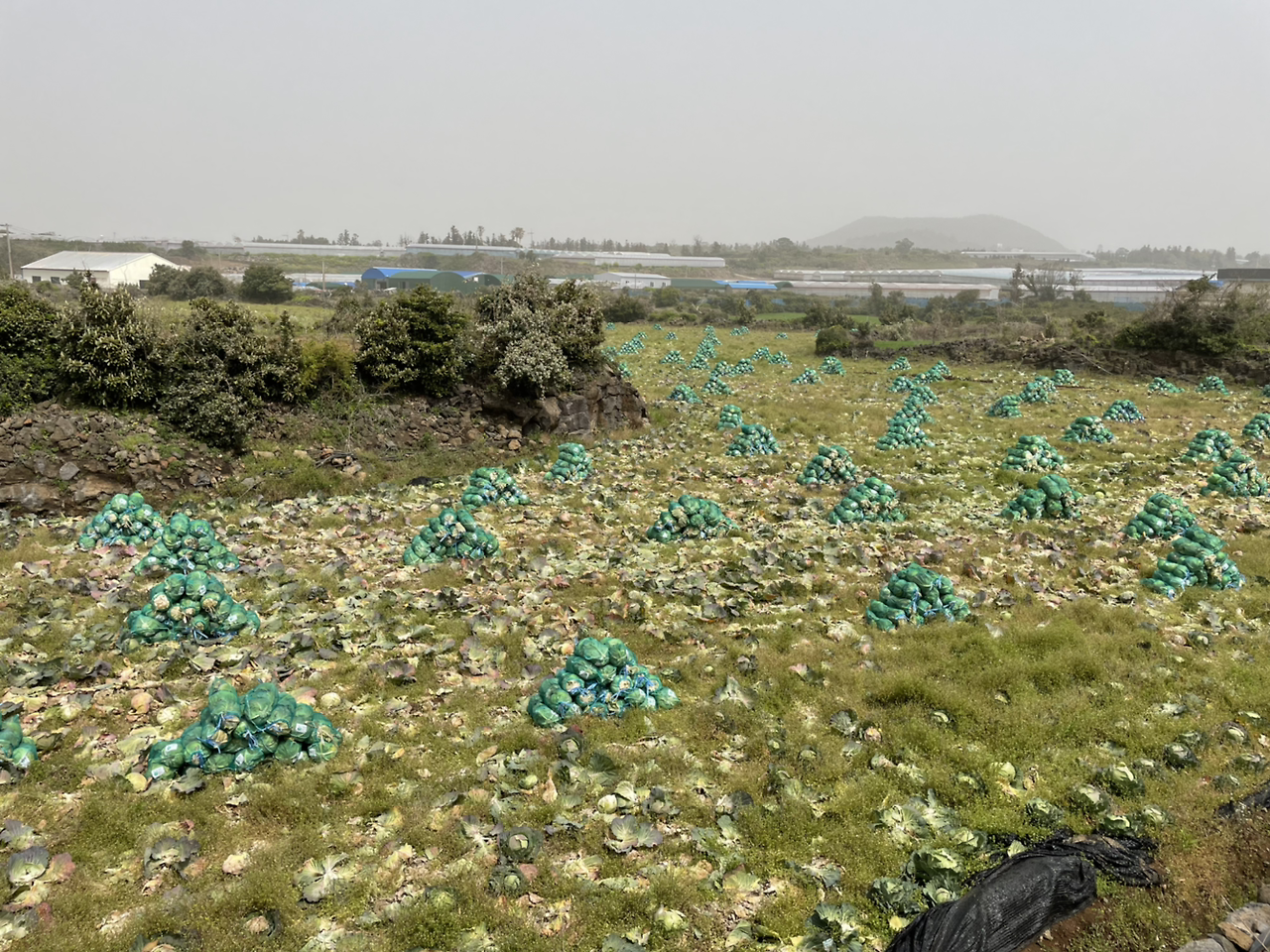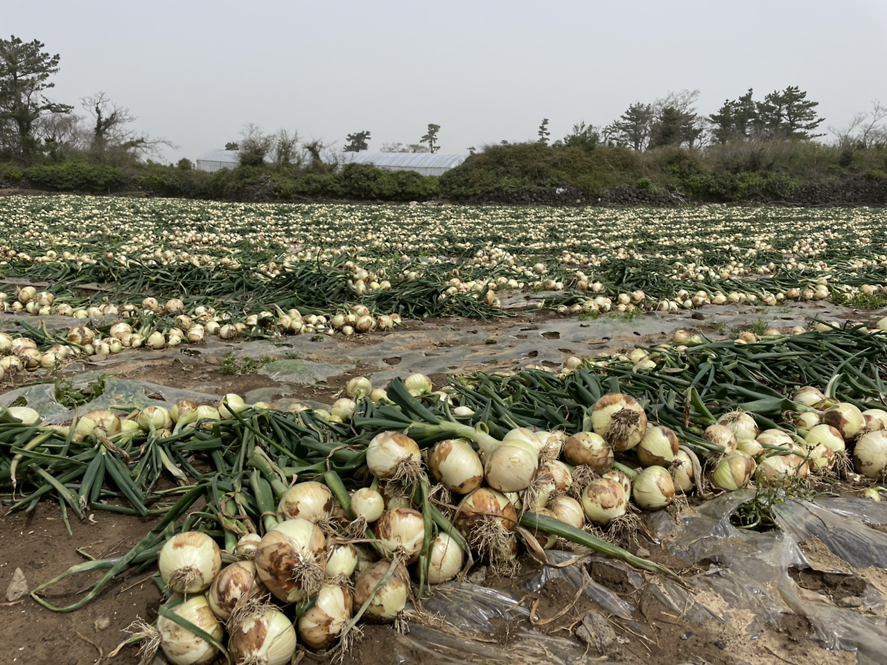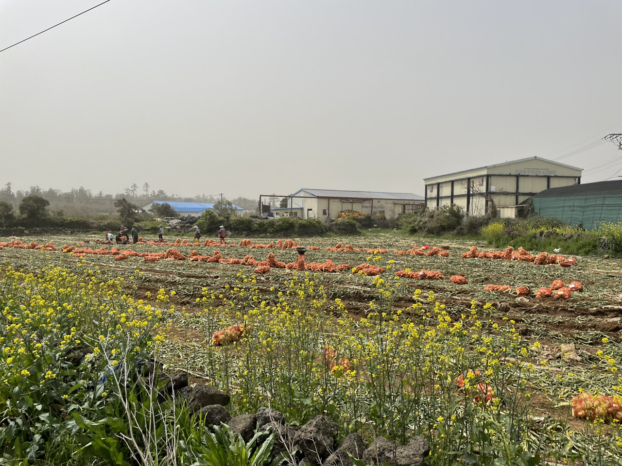 양파, 마늘, 양배추 수확 풍경이 펼쳐진다. 점심때라 옹기종기 모여 앉아 새참 드시고 계신데 구수한 밥맛이 바람에 실려온다. 나도 '한끼줍쇼'하며 합류하고 싶다. 바람에 실려오는 유채꽃 향기로 그저 허기를 좀 달랜다.