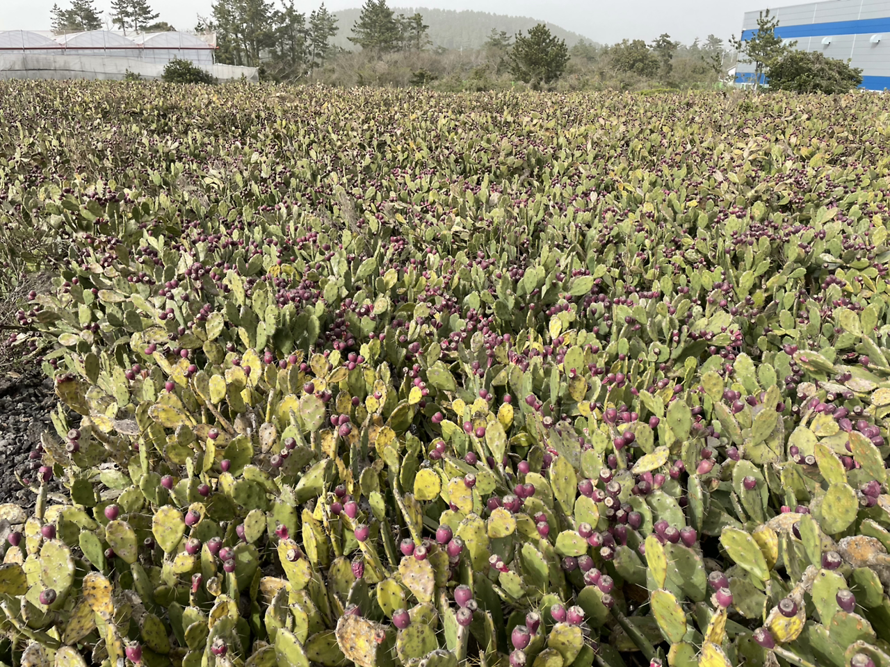 선인장 밭이 나온다. 그리고 개울을 끼고 걷는 소나무 숲길. 너무 길다. 참으로 길다. 그것도 거의 일직선이다. 발바닥, 발가락 모두 아파온다. 그래도 이국적인 풍경은 아름답다. 선인장에 달려 있는 보라색 백년초도 귀엽다. 드디어 바다 내음이 밀려온다. 마지막 개울을 끼고 내려가자 있는 선인장 밭이 운치도 있고 피곤도 잊게 해준다.