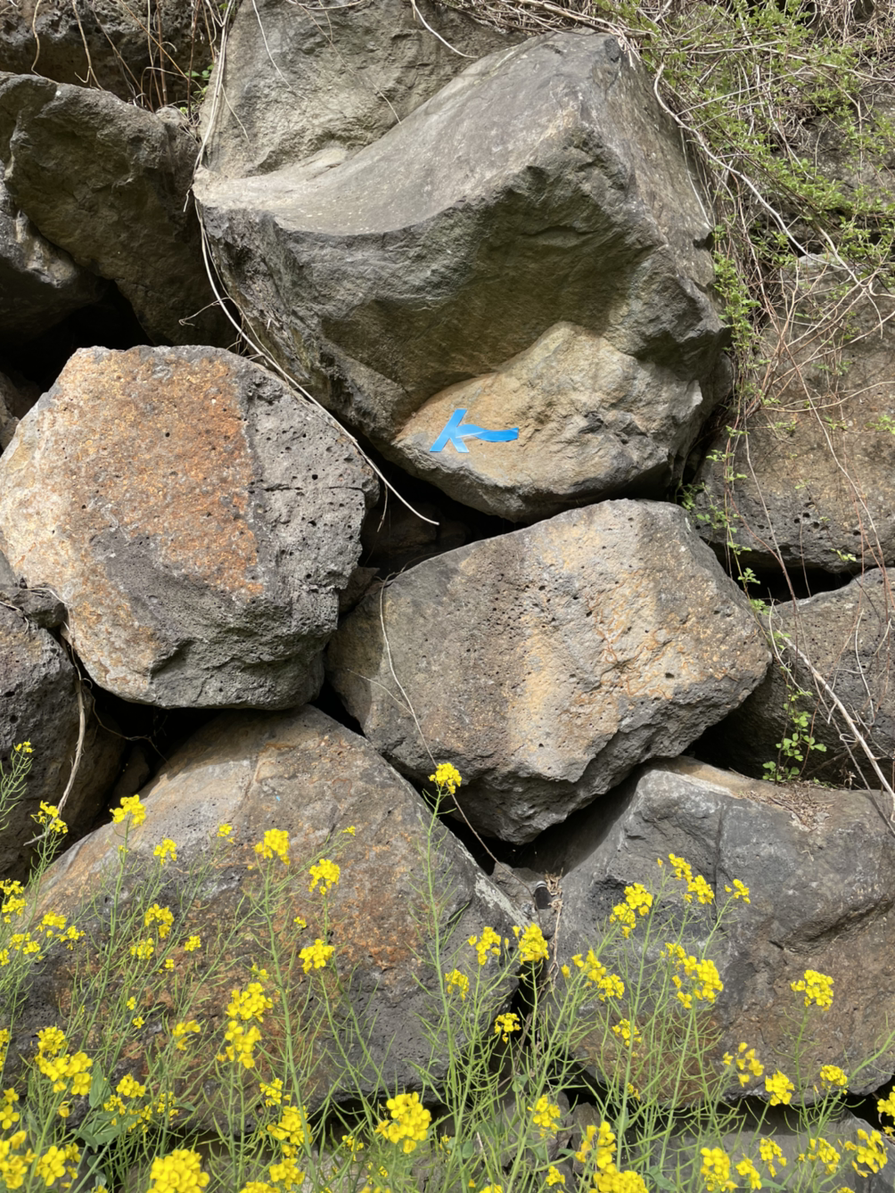 올레, 제주 사투리로 '길에서 집까지 연결된 아주 좁은 골목 비슷한 길'을 의미한다. 그 의미에 딱 맞는 길을 걷다. 향긋한 풀내음과 꽃내음이 코를 찌른다. 바위에 앙증맞게 파랑과 주황으로 화살표 표시해 둔 것도 정겹다.