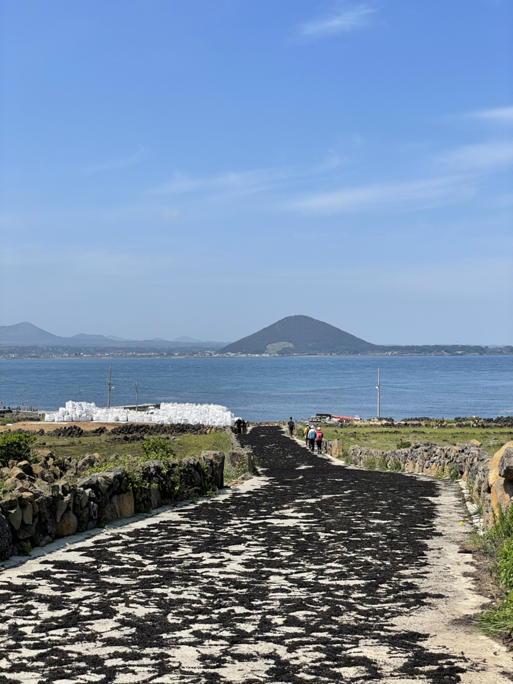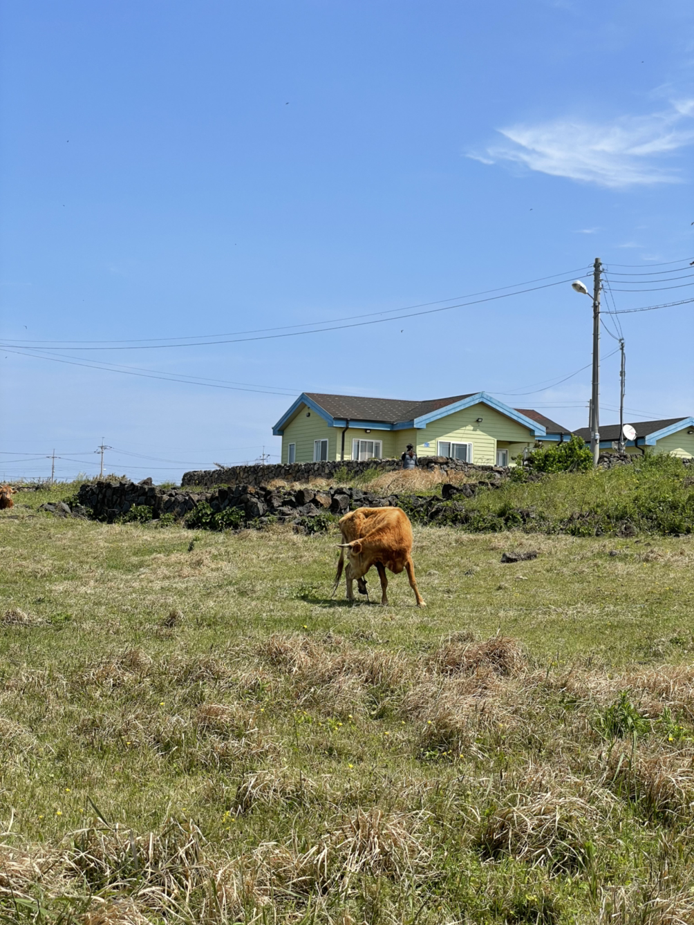 길바닥에 톳을 말리고 있다. 톳을 피해 천천히 걸어간다. 낮은 언덕을 오르는데 牛島(우도)에서 첫 牛(소 우)도 만났다. 우도에서 소를 못 보고 지나 가는 愚(우)도 범하면 안 되지. ㅎㅎ