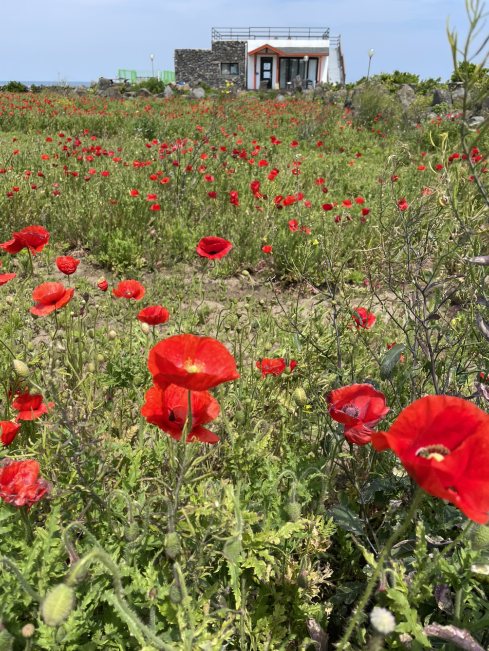 중간 스탬프 찍는 곳을 찾지 못해 좀 헤매다. 앞에 가던 올레꾼에게 물어보니 하고수동해수욕장 끝 부근에 있단다. 걷는데 자전거, 작은 전기차들이 쉼 없이 지나간다. 다들 와서 그런 걸 타고 우도를 한 바퀴 도는구나. 난 두 발이지만.