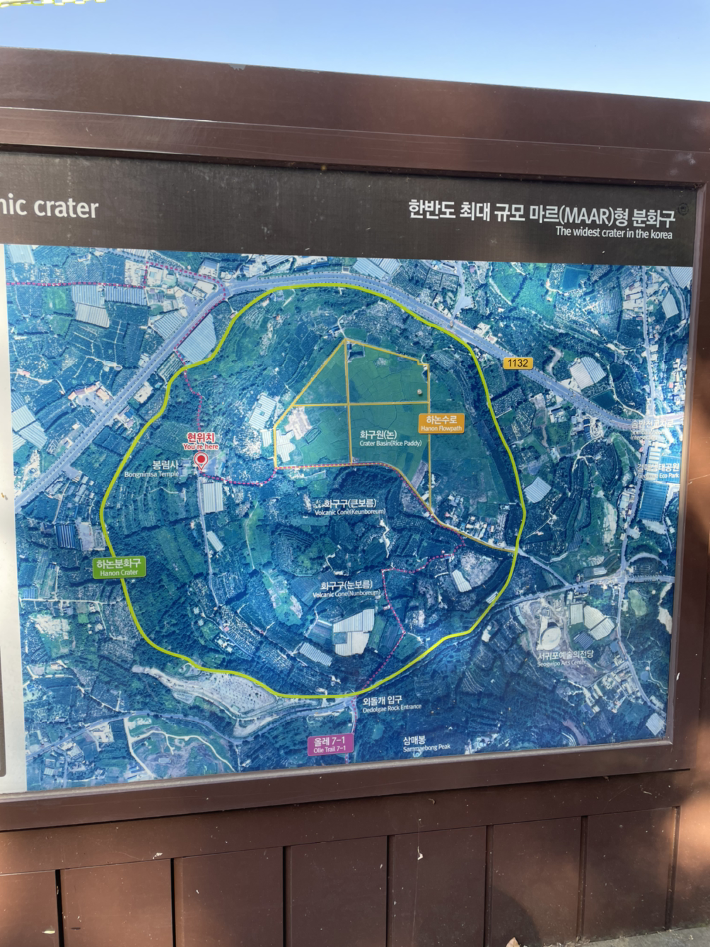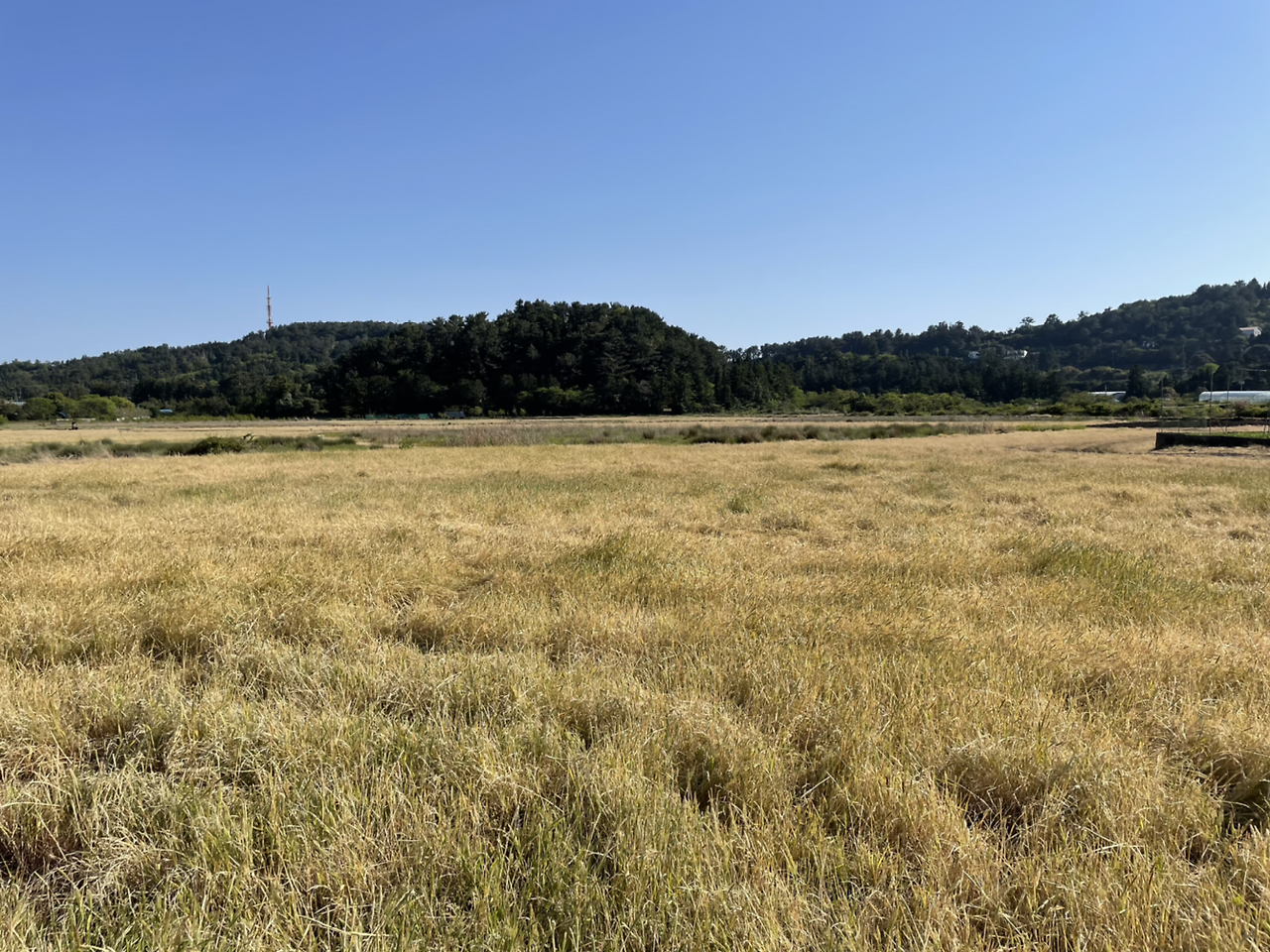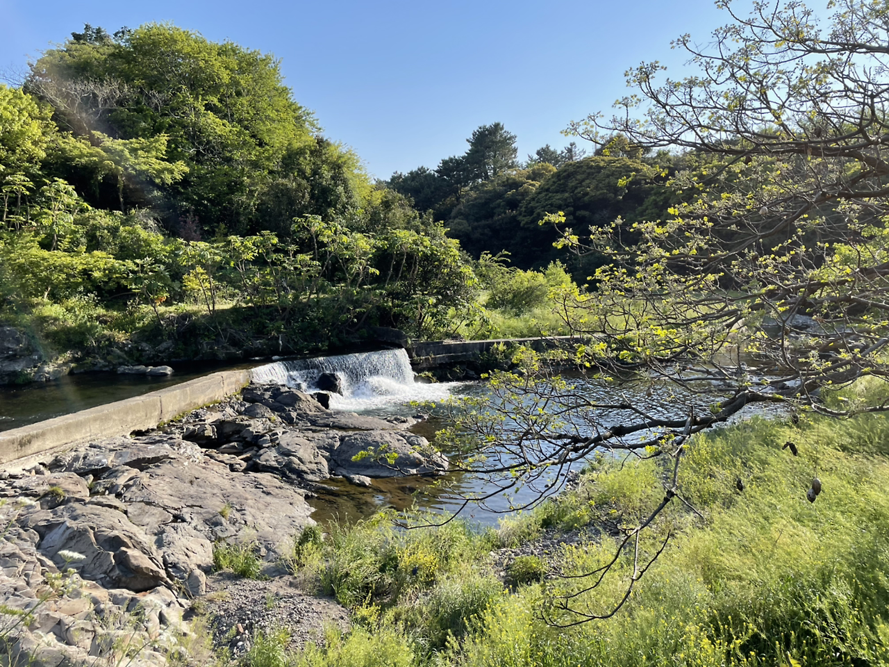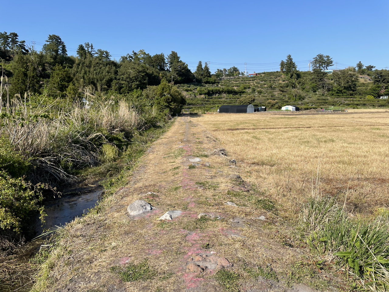 큰 논이라는 뜻을 가진 하논마을. 국내 유일의 마르(Marr) 형 분화구라고 하는데 말이 좀 어렵다. 쉽게 설명하면 뜨거운 마그마가 지표면으로 올라오다 지하수층과 만나 증기 상태로 폭발하여 생긴 평평하고 넓은 분화구를 말한다. 이 분화구는 백록담보다 넓은 동서 간 지름이 1.8킬로에 달한다. 원래부터 지하수가 많고 평평해서 500년 전부터 논농사를 지어왔다고 한다. 지금은 벼농사 보다 논두렁에 미나리만 조금 보일 뿐 잡초만 무성하다. 동시에 하논마을은 4.3 때 마을 전체가 소개(疏開)되는 아픔 역사를 간직하고 있는 곳이기도 하다. 백록담 보다 큰 분화구 안 마을이라 바람도 적고 조용하다. 마을을 크게 병풍 두르고 있는 것 같다. 논두렁 옆에 개울도 있네. 여긴 밭이 아니다. 논이다. 밭 위 경계를 표시하는 돌담도 없다. 그저 물 빠진 논의 풍경이다.