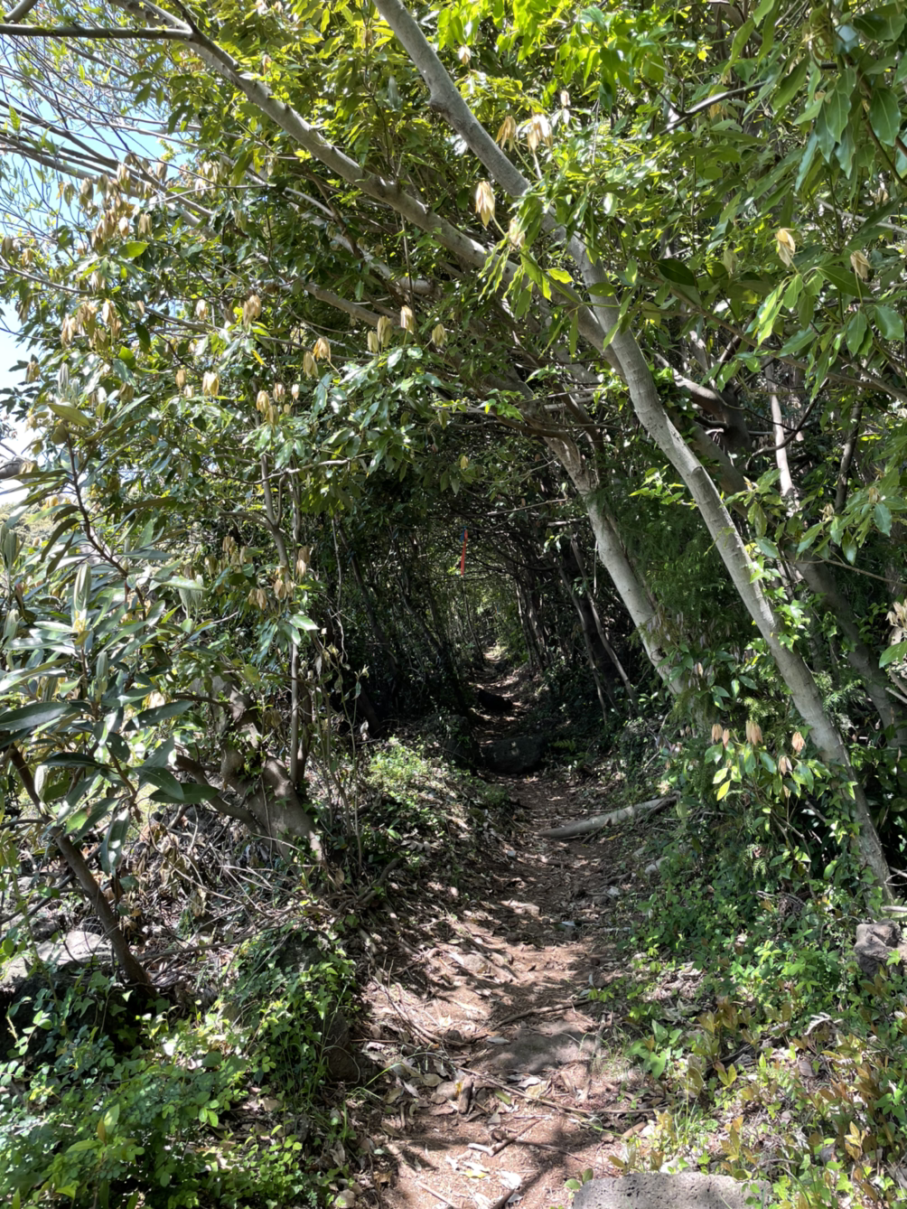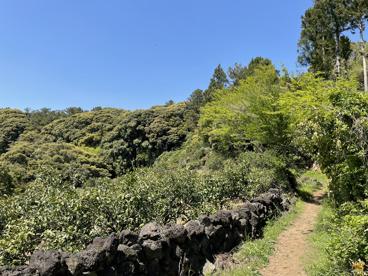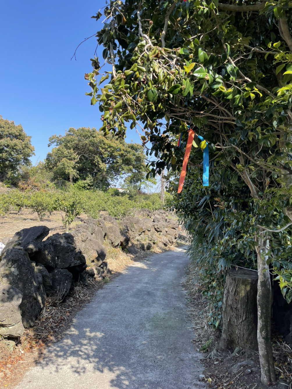언덕을 다 오르니 흙길이 나온다. 숲 속 길이 이렇게 좋을 수가. 서귀포 도심을 벗어나니 이렇게 향기가 달라진다. 흡사 아카시아 꽃 향이 난다. 벌써 핀 건가? 나중에 안 사실이지만 그건 귤꽃 향기였다. 귤꽃 향기를 맡으며 걷는다는 것은 또 얼마나 축복인가.