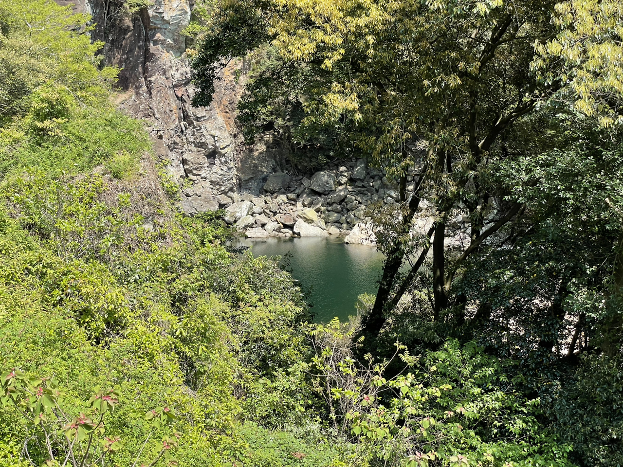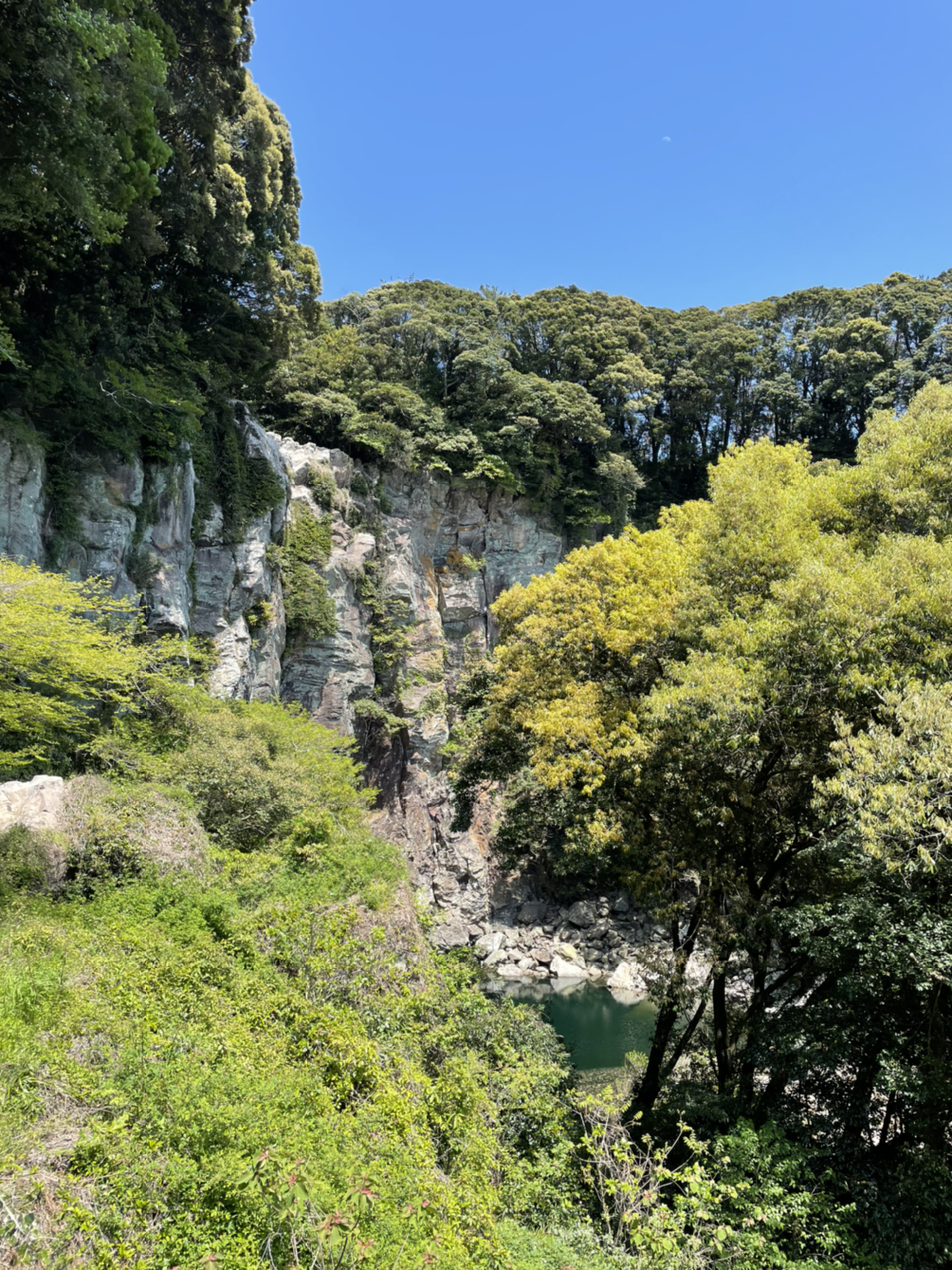 물 마른 엉또폭포. 난대림 우거진 절벽 아래 물은 고여있건만. 거대한 물줄기 떨어지는 장관을 보지 못해 안타깝다. 물 마른 폭포, 목마른 나. 당근을 꺼내 문다.