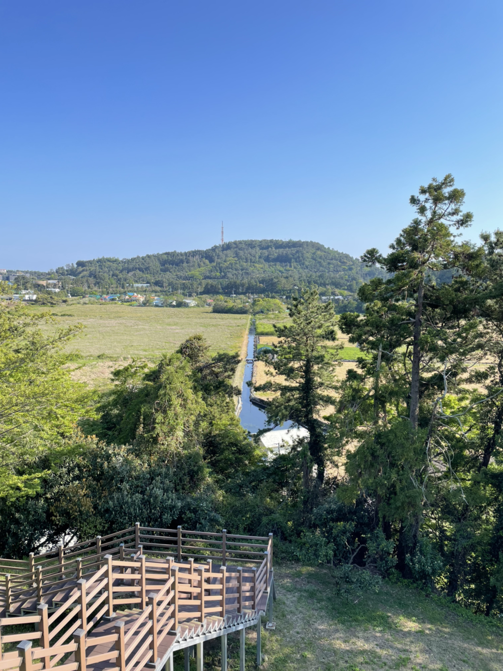하논 분화구(습지)를 벗어나는 마지막 계단이 나의 마지막 체력을 테스트한다. 올라가다 보니 분화구를 관통하는 수로도 보인다. 이내 계단은 끝난다. 확실히 분화구를 벗어나니 바람이 분다. 얼음물 마시고 잠시 쉰다.