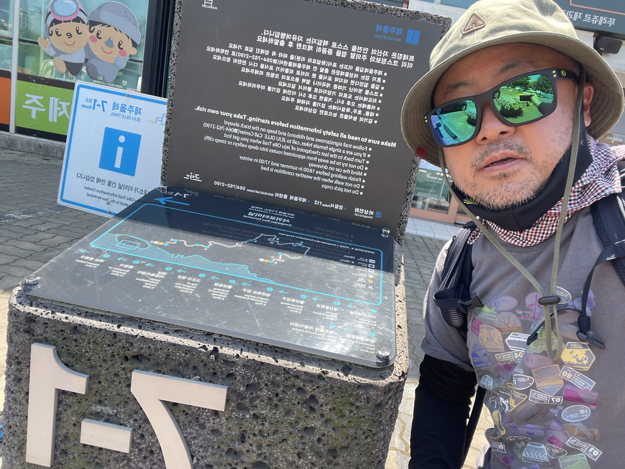 서귀포 7-1 코스 출발점 표지석 찾느라 한참을 헤맨다. 출발점이 월드컵 경기장 입구에서 서귀포 터미널 앞으로 변경되었단 안내 표지판을 보고 12:55에 겨우 간세 스탬프 박스를 찾았다. 흑! 이마트와 월드컵 경기장 한 바퀴 돌았는데 출발도 하기 전에 힘을 뺐네.