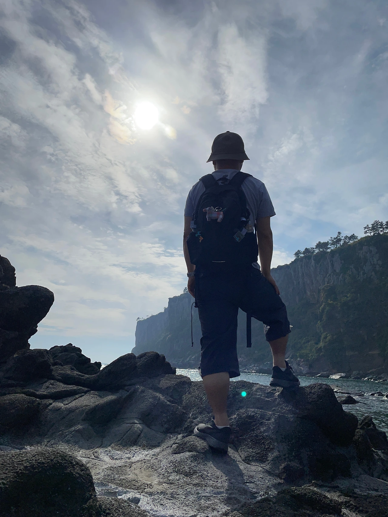눈물을 뒤로하고 다시 운전대를 잡는다. 다시 본 깨진 범퍼가 가슴을 아프게 한다. 알뜨르 비행장의 파랑새도 다시 보고, 대평포구로 이동한다. 지난번 제대로 보지 못한 박수기정을 제대로 보기 위함이다. 박수기정은 바가지로 마실 샘물을 뜻하는 '박수'와 솟은 절벽 '기정'의 합성어다. 절벽 아래로 가면 샘물이 있다고 하는데 거긴 오늘 밀물이라 못 들어갈 것 같다.
