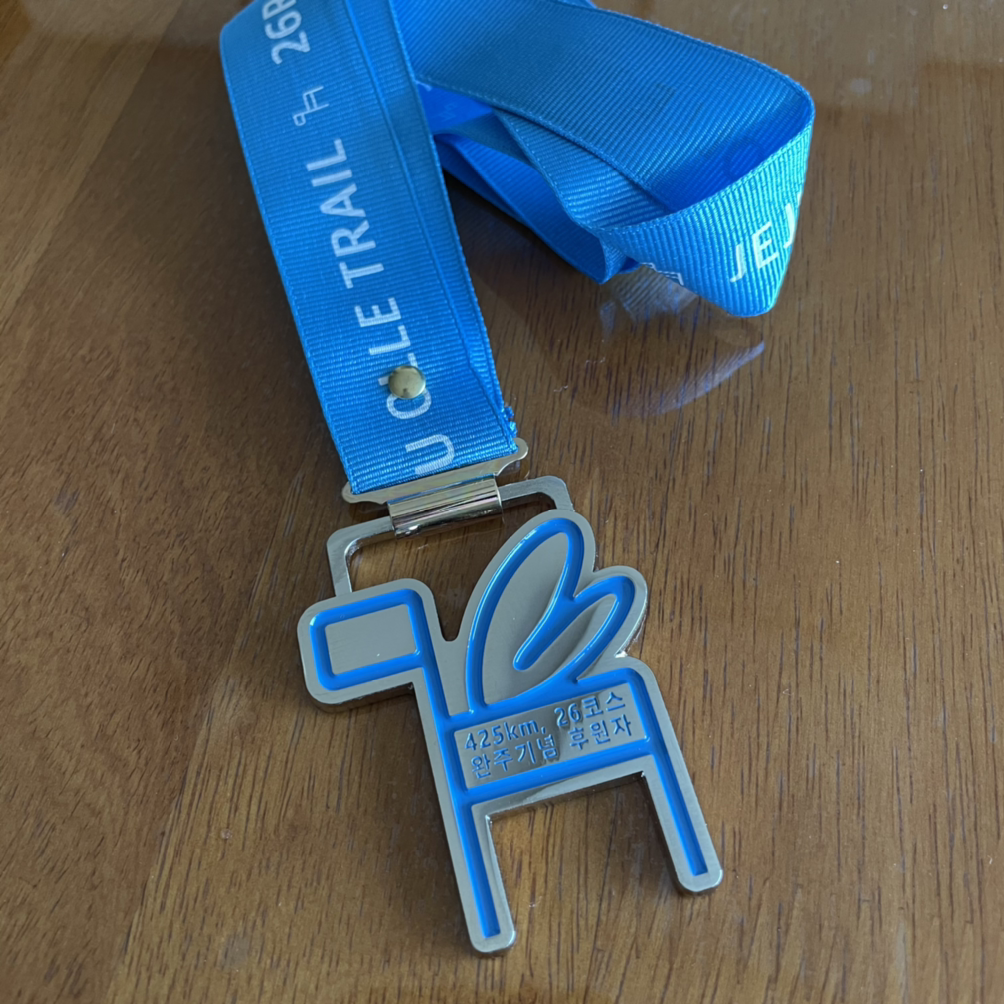 완주 메달은 파란색과 주황색이 있다. 하나를 골라야 하는데 난 이번에 정방향으로 갈었으니 파란색으로 했다. 담엔 역방향으로 걸어서 주황색 메달을 받을 거다. ㅎㅎ