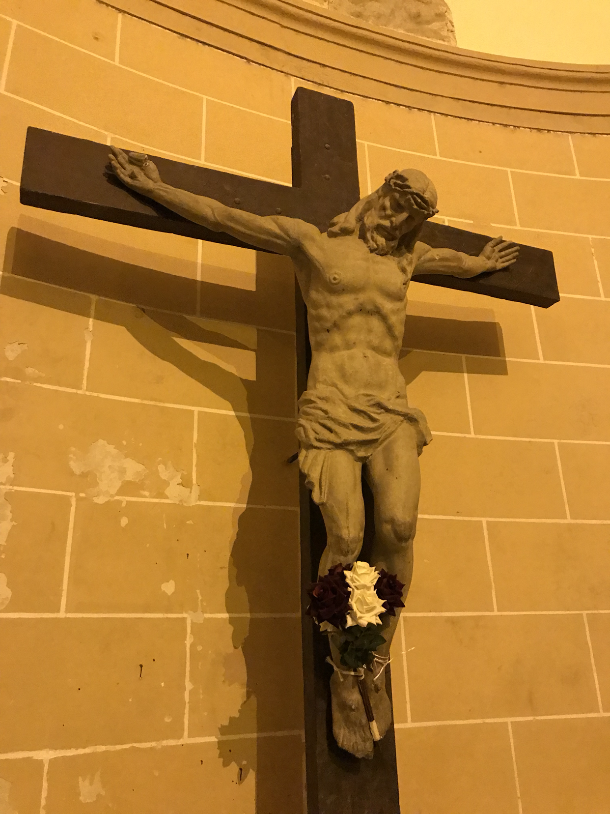 다 나 같은 순례자에겐 구구절절 진한 기도다. 감사하다. 기도를 마치고 나오는데 성당 문 오른쪽으로 좀 떨어진 곳에 예수 십자가 상이 보인다. 같이 간 친구들이 다 스마트폰을 꺼내 사진을 찍는다. 나도 찍으려다 못 박히신 발목 부분이 이상해서 가까이 가서 보니 글쎄... 그 발목을 이쁜 꽃송이로 묶어 가려 놓은 것이 아닌가. 그것을 한 사람의 따뜻한 마음이 느껴져 뭉클했다. 뒤돌아 서면서 함께 간 친구들에게 그거 봤냐고 물으니 아무 대답도 못한다. 그래서 “사진 찍는 게 중요한 게 아니라 제대로 보고 제대로 느끼는 게 더 중요해. 지금 다시 가서 보고 와라”고 얘기해 주었다. 다들 되돌아와 넘 좋았다고 한다.