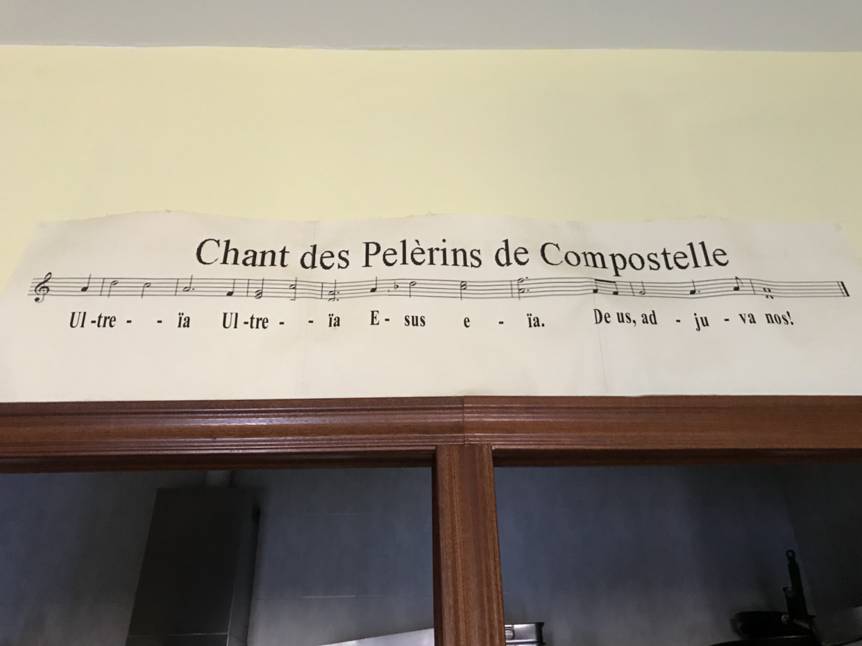 Ultreia Ultreia Esuseia, Deus, adju vas nos(계속 걷고 계속 걷고 성장하고, 하느님이 우리를 도와주실 거다)
