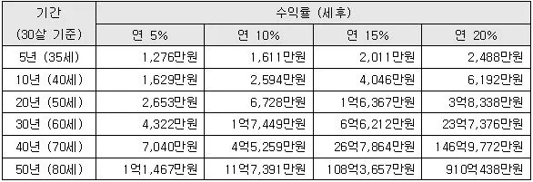 수익률 연 5% 일 경우 8,371만원(약 2.3배),
