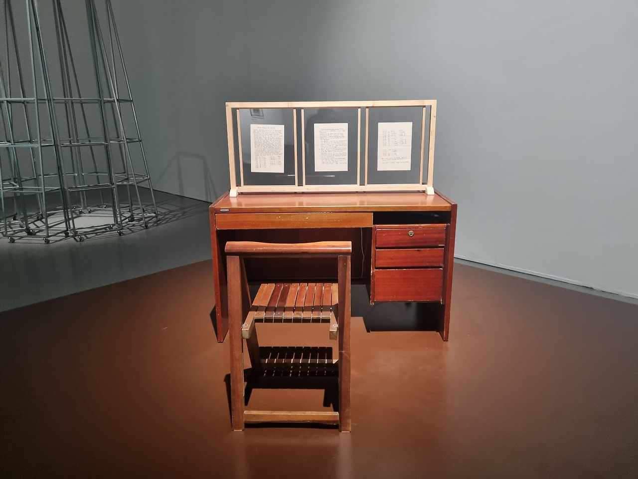 실향민이었던 작가의 외할아버지 책상이다. 외할아버지가 평생 북한을 그리워하며 수집한 자료와 실향민의 목소리를 사운드로 설치했다.