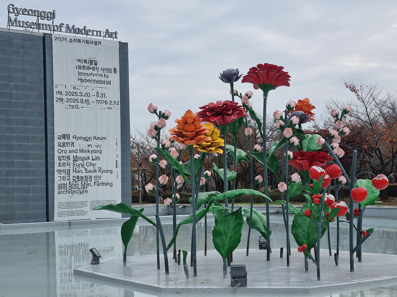 안산은 예전에 YES24에서 인터뷰 기사를 쓸 때 한 번 가보고 처음이다. 나처럼 혼자 다니는 걸 거리낌 없어하는 사람은 진즉에 차가 있어야 하는데 그걸 몰랐다. 늦게나마 차는 선녀의 날개옷처럼 자유를 주었다. 안산은 토요일 오후 잠깐 마음먹으면 갈 수 있는 곳에 있었다. 청계 톨게이트를 지나 조남 분기점을 통해 영동고속도로로 들어갔다. 경기도 미술관이 있는 화랑 유원지에는 가을빛이 곱게도 물들어 있었다. 저수지 주변에는 휴일 오후 단풍을 즐기러 나온 시민들의 여유 있는 모습들이 보였다.
