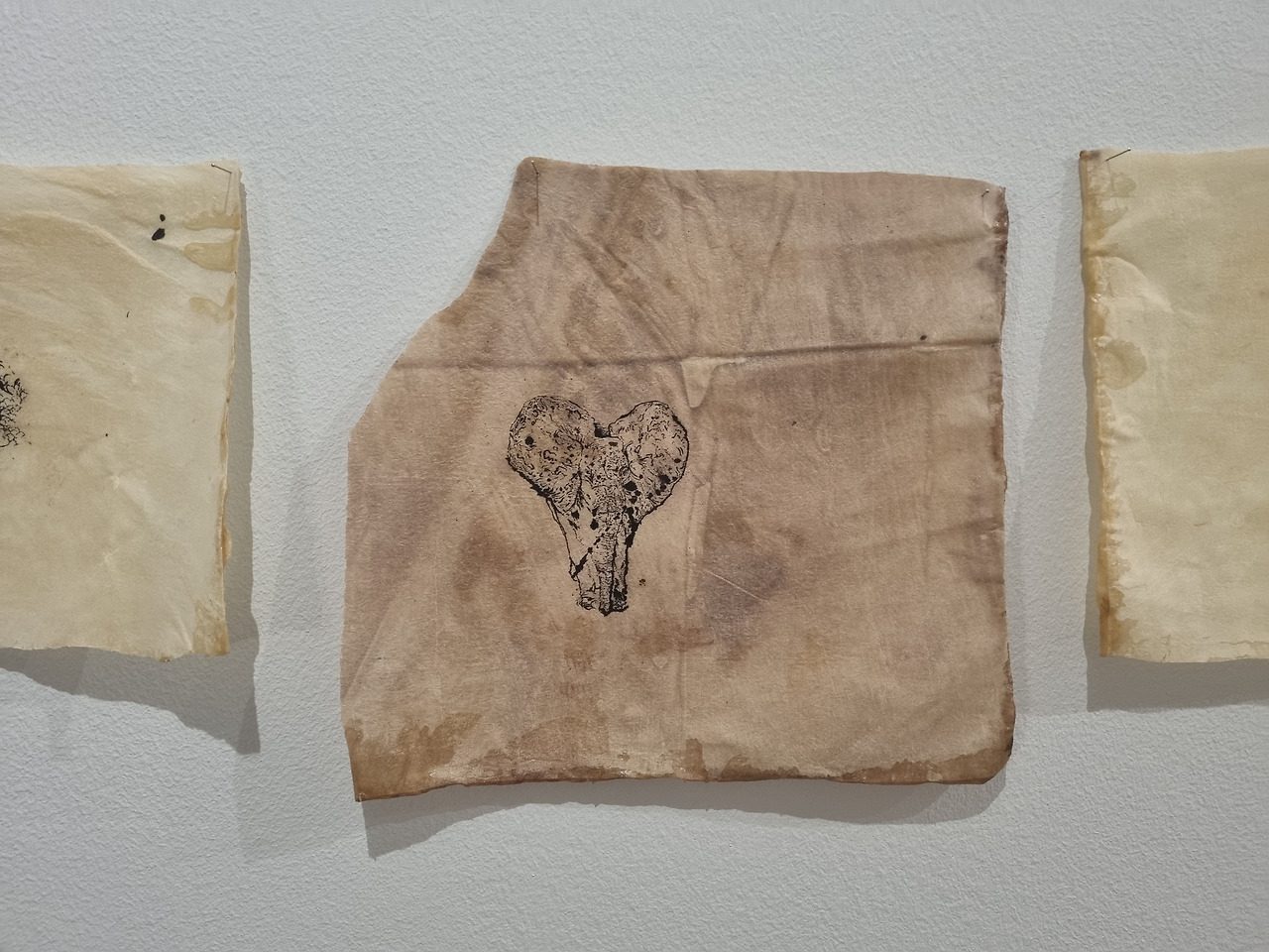 강지율 작가는 구김지에 천연고무액을 입혀 주삿바늘로 그림을 그리고 글을 썼다. 천연고무액은 날씨가 더워지면 녹아서 흘러내리기 때문에 곧 사라지고 말 것이다. 사라질 작품을 만들면서 사라지지 않기를 바라는 작가의 양가적인 감정이 하트를 통해 전달된다. 사랑은 상실 속에서 선명해지고 죽음은 삶에 닿을 때 비로소 드러난다는 작가의 말은 사라질 운명을 가진 작품을 통해 보여준다.
