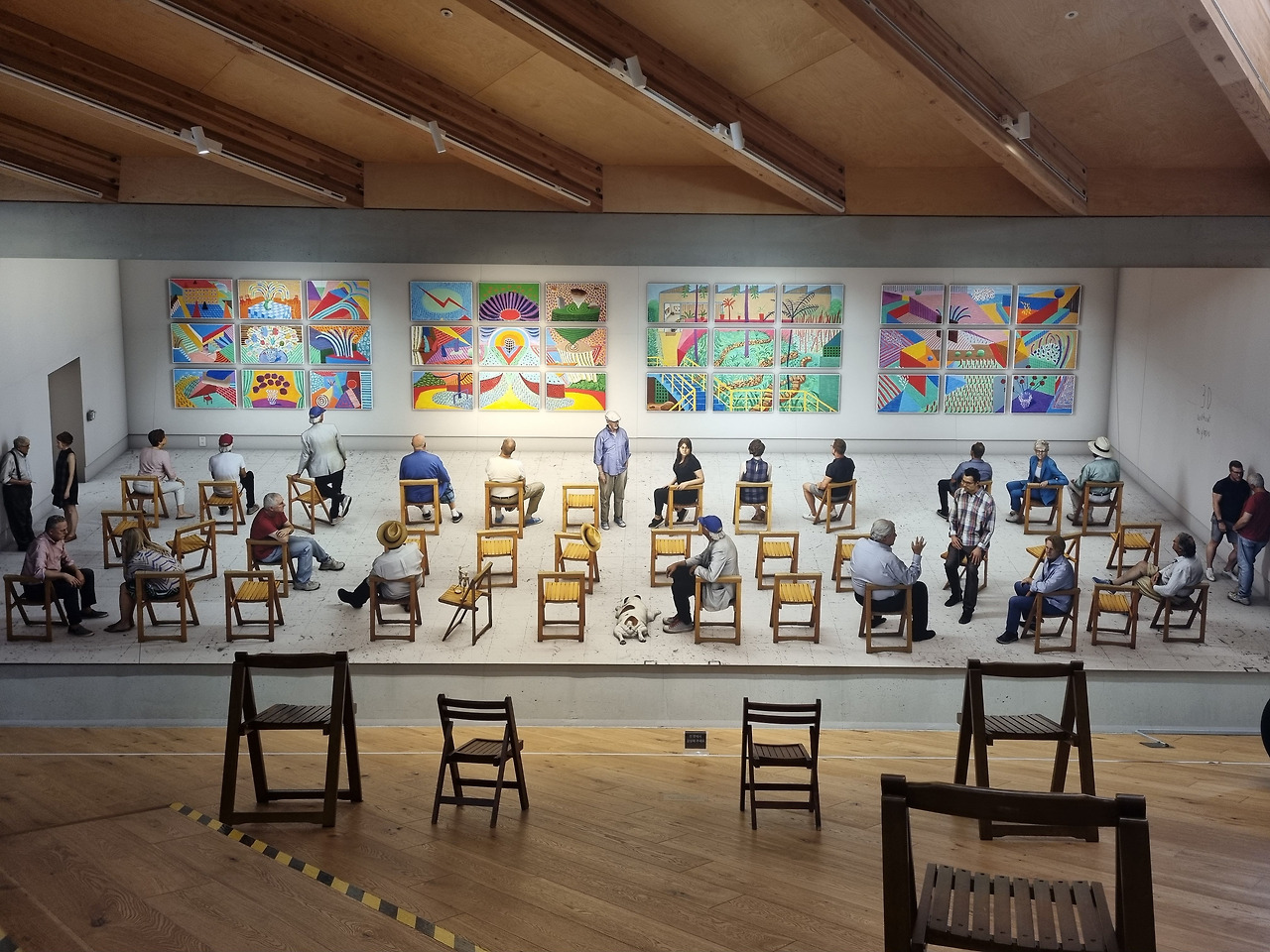 방 하나를 차지하고 있는 데이비드 호크니의 그림이다. 크기가 273.1 X 873.8cm니까 이 작품을 위해 방을 하나 따로 마련해야 하는 수준이다. 사진 드로잉 기법이라고 하는데 다각도로 수백 장 사진을 찍어 합성해서 인물과 오브제를 만들었다고 한다. 등장인물들은 실제로 작가의 지인들로 아티스트, 소설가, 가수, 배우, 운동선수 등이라고 한다. 굉장한 작품이다.