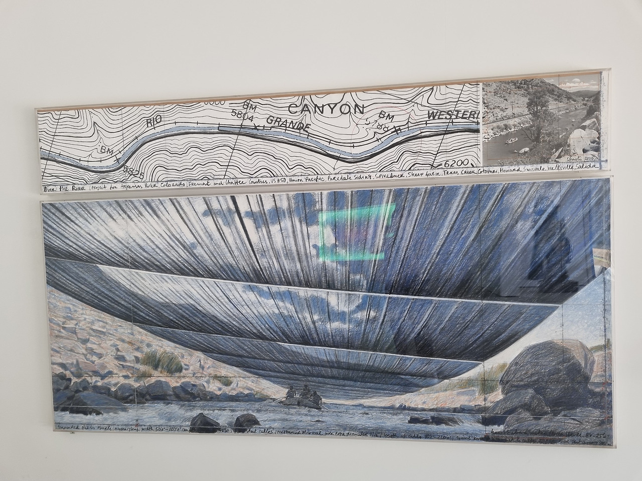 설치미술의 대가 크리스토 자바체프의 작품은 사진으로 본 적이 몇 번 있다. 그가 천으로 뒤덮었던 '베를린, 국회 의사당', '파리, 퐁뇌프 다리', '뉴욕 센트럴파크, 더 게이트'등의 사진이 기억난다. 하지만 이 작품은 실현되지 못했다고 한다. 구상에서 끝난 작품의 드로잉이다. 아칸소강을 67.5km 덮으려고 했다니 어마어마한 작품이 되었을 듯싶은데 법률적 문제로 중단된 모양이다.