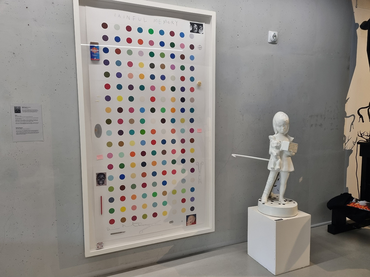 여기서 데미안 허스트를 만날 것이라고는 생각지 못했다. MMCA서울에서 지금 열리고 있는 데미안 허스트전으로 더욱 핫한 컬러 스팟을 만났다. 이 알록달록한 점들은 알약이다. 그리고 군데군데 붙어 있는 것들은 약포장지와 메스 기타 등등 의료에 관한 것들. 현대 사회가 약으로 불안을 관리하는 시대라는 메시지를 전달하고 있다. 이 알약 그림만 1,000점 이상 만들었다고 하니 내가 생각하는 것보다는 볼 수 있는 곳이 꽤 많겠다 싶다.