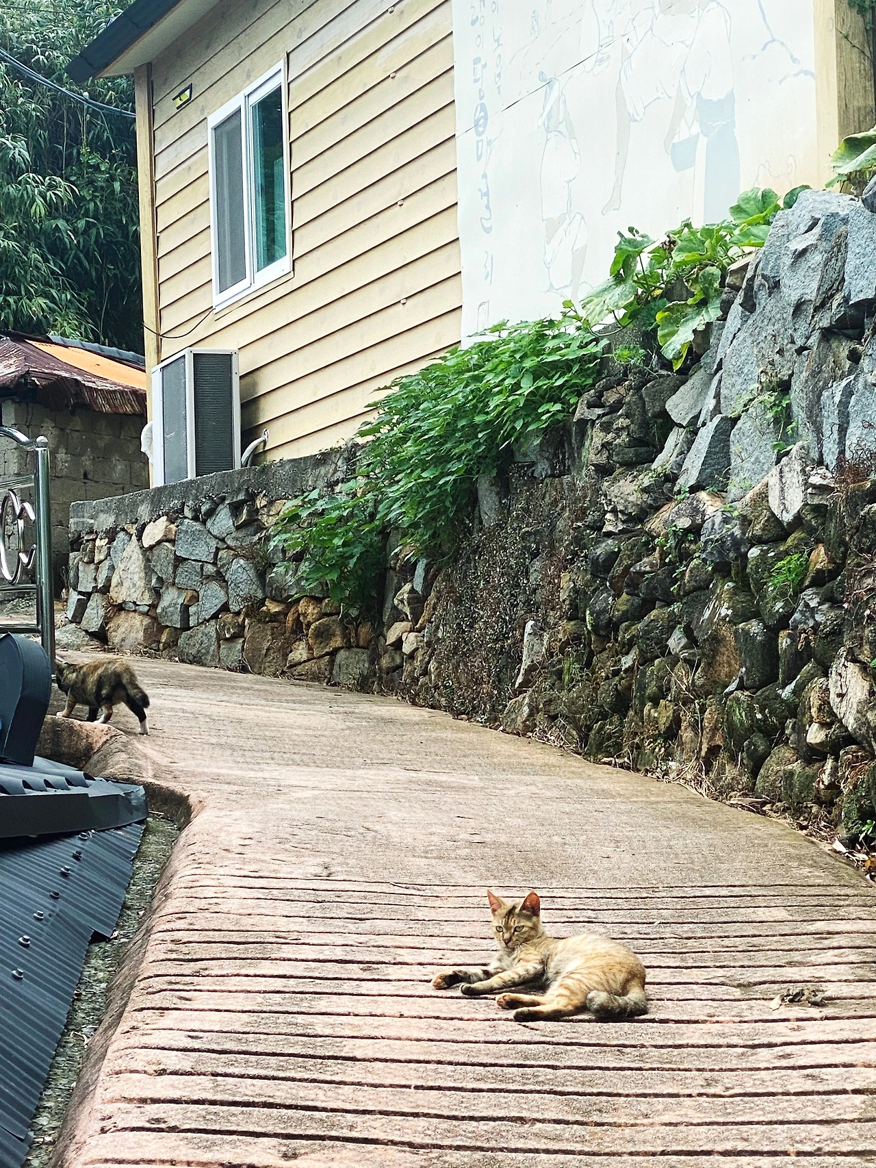 다랭이마을뿐만 아니라 남해에는 고양이가 정말 많다. '이 길을 지나려거든 통행료를 내놔라'라는 눈빛으로 절대 비켜주지 않았던 녀석.