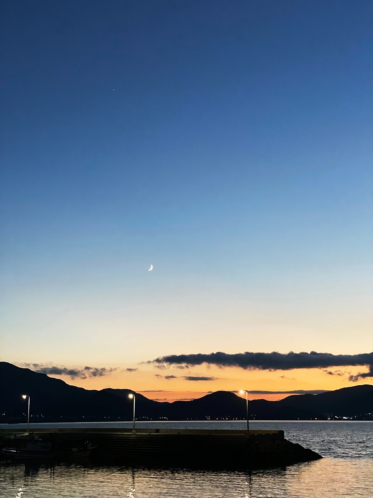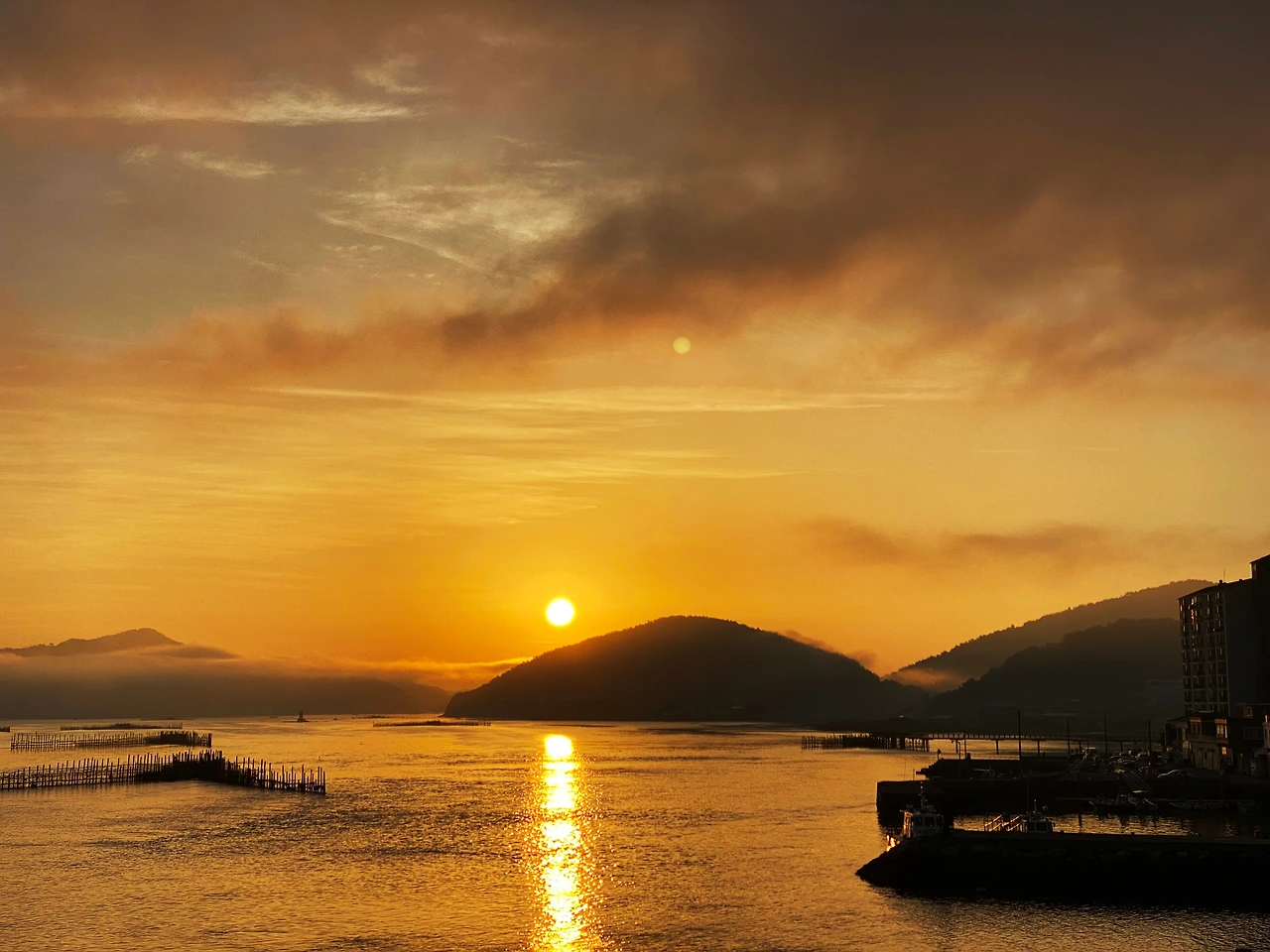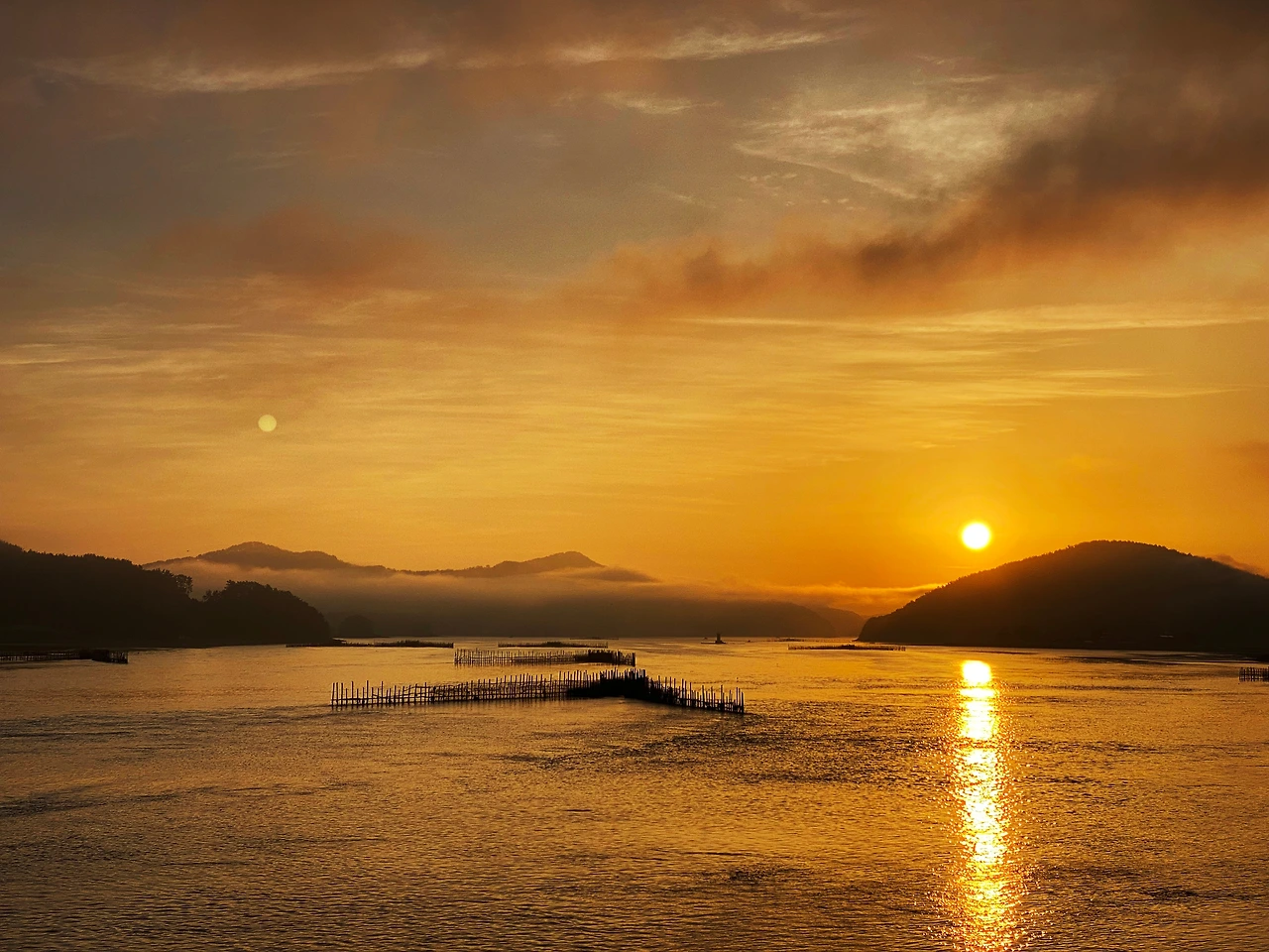 여행 마지막날 일찍 잠에서 깨어 일출을 보겠다고 잠옷바람에 급히 나가 마주하게 된 일출, 이미 떠버리긴 했지만 그래도 바다 위에 떠있는 죽방렴이 일출과 맞닿아 검고 붉은 아침 바다가 묵직하게 가슴에 와닿았다. 남해 일출명소로 여러 곳이 있지만 나는 당연 창선교를 꼽을 것이다.