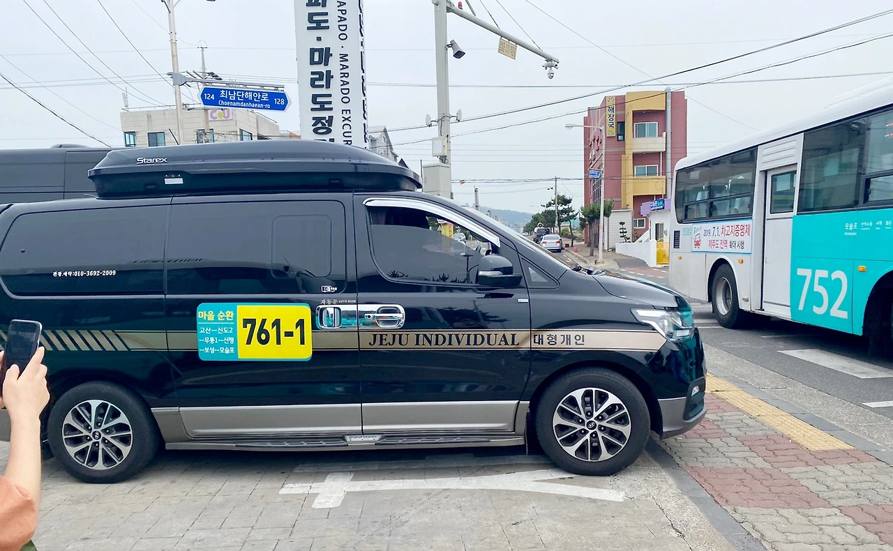 승선표를 찾아야 하는 시간이 다가오고 있었다. 안내만 그러할 뿐 조금 더 기다려주시겠지 생각하며 걸어가고 있는데 가는 방향에 버스정류장이 보였다. 다행히 운진항으로 가는 버스가 있기는 한 데, 운행 시간을 몰라 택시를 타야 하나 망설이는 찰나에 검은 벤 한대가 와서 섰다. 그리고는....(따라라란 따란 따란... 갑자기 인생극장 시그널이 들리는)